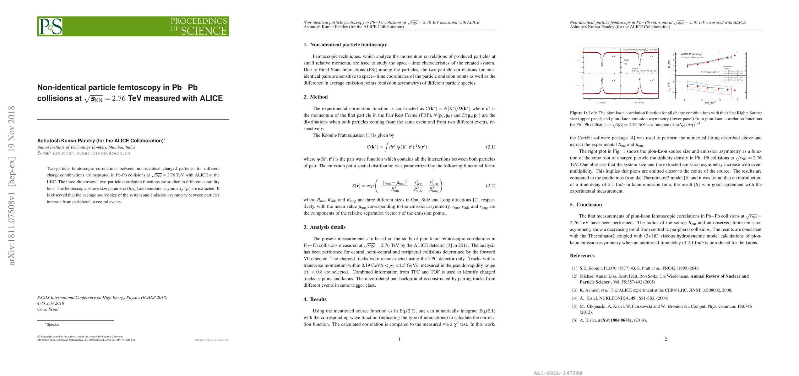 This paper reports on femtoscopic correlations between non-identical charged particles in Pb-Pb collisions at 2.76 TeV using ALICE at the LHC, revealing that the average source size and emission asymmetry increase from peripheral to central events. The study extracts the source size parameter ($R_{Out}$) and emission asymmetry ($\mu$) across different centrality bins.