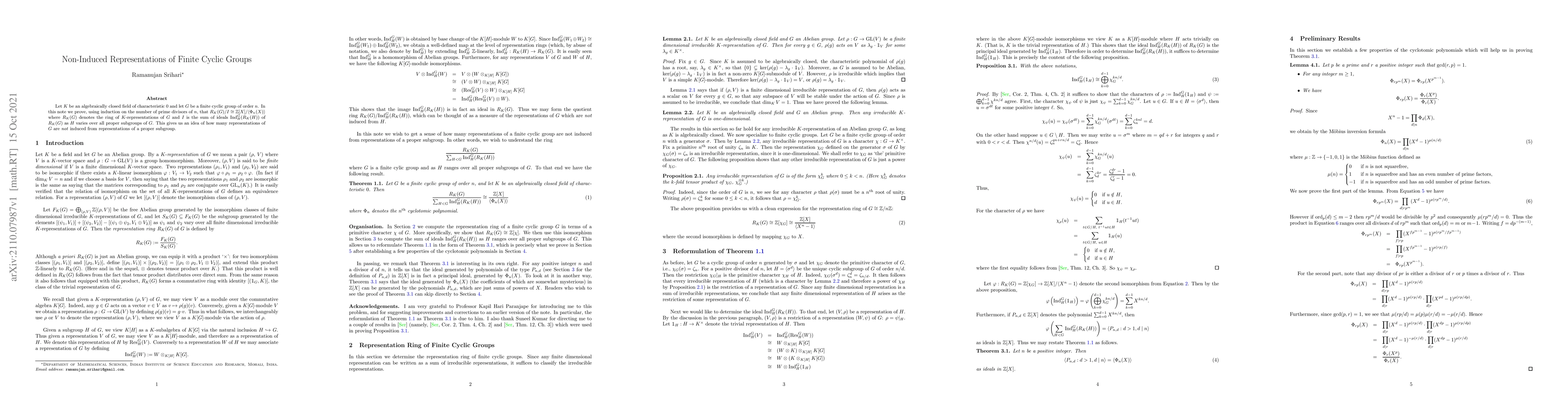 Researchers prove that the ring of K-representations of a finite cyclic group G is isomorphic to Z[X]/\langle α_n(X) \rangle, where G's order n has a specific relationship with prime divisors.