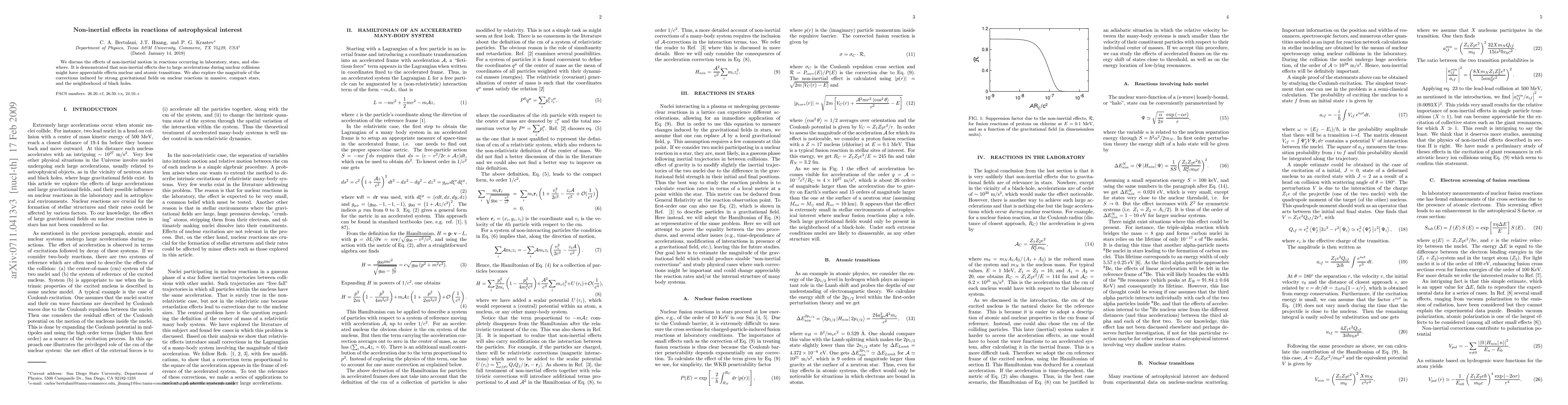 This paper investigates how non-inertial effects, such as those from large accelerations and strong gravitational fields, influence fusion reactions in various astrophysical environments, demonstrating significant impacts on nuclear and atomic transitions. It also quantifies the corrections induced by these effects in compact stars and near black holes.