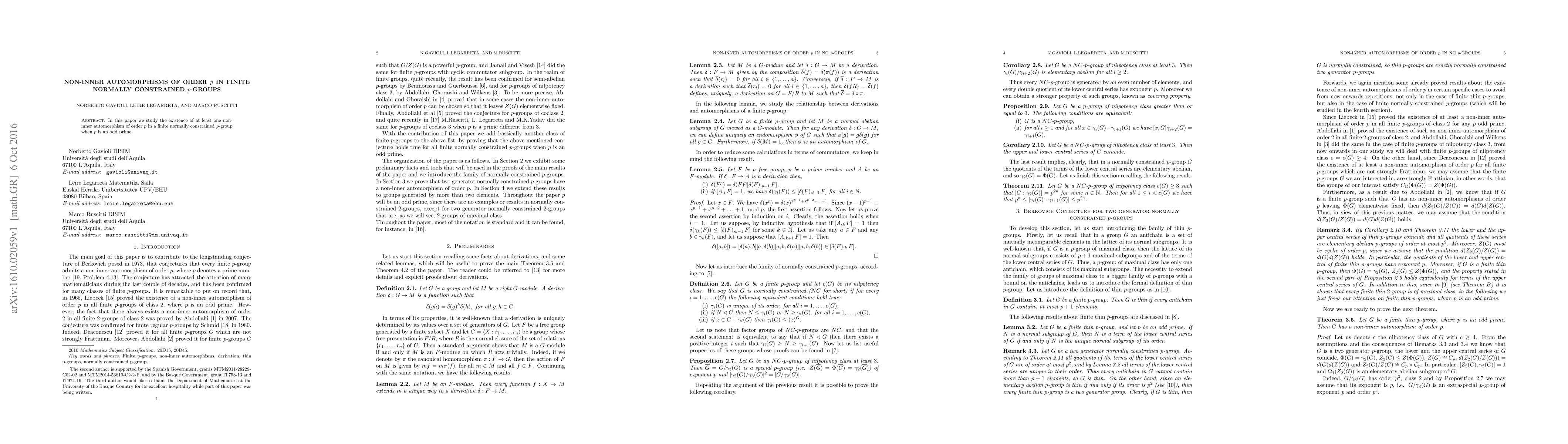 In this paper we study the existence of at least one non-inner automorphism of order p in a finite normally constrained p-group when p is an odd prime.