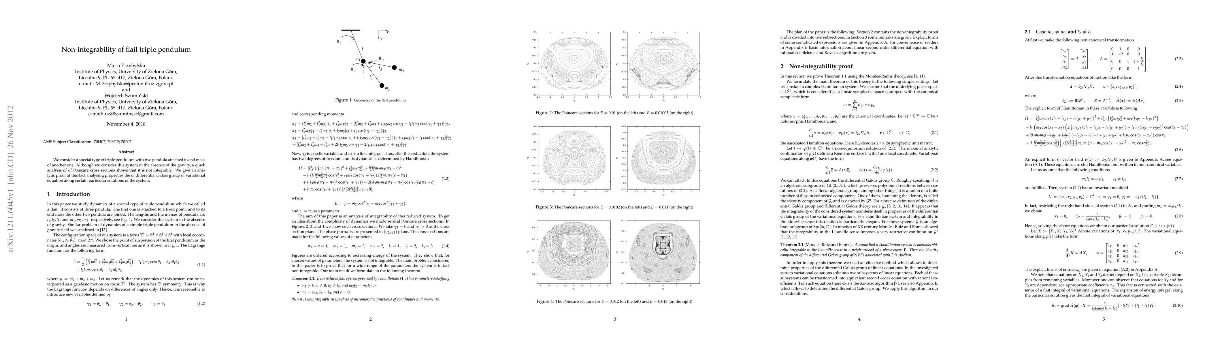 A study found that a type of triple pendulum system is not integrable, meaning its motion cannot be predicted with infinite precision, even without gravity. This conclusion was reached through an analytic proof using differential Galois group analysis.