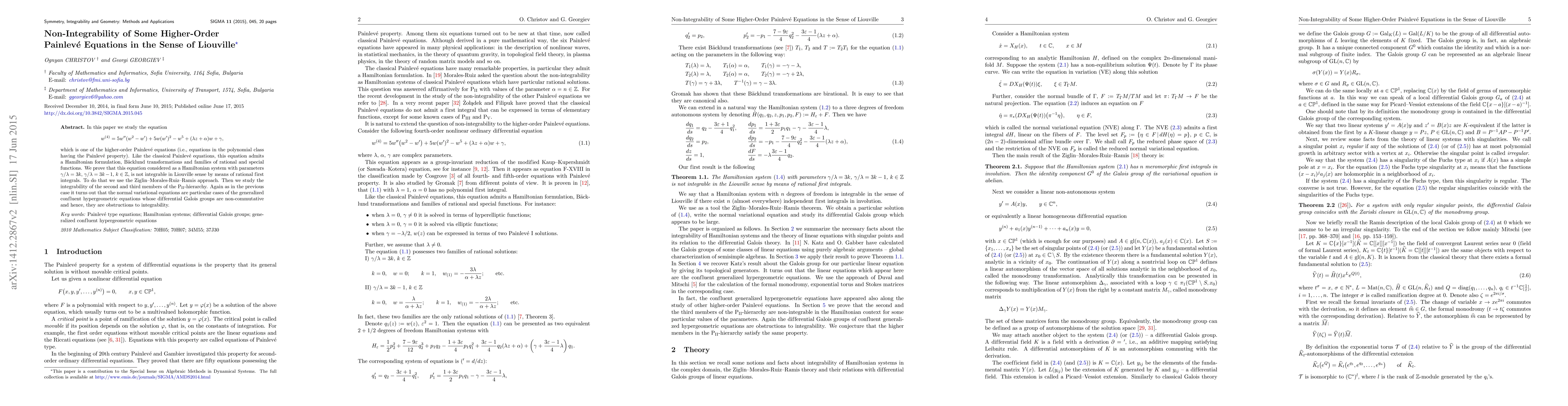 This research paper investigates the non-integrability of a higher-order Painlevé equation in Liouville sense, using the Ziglin-Morales-Ruiz-Ramis approach to prove it cannot be integrated with rational first integrals.