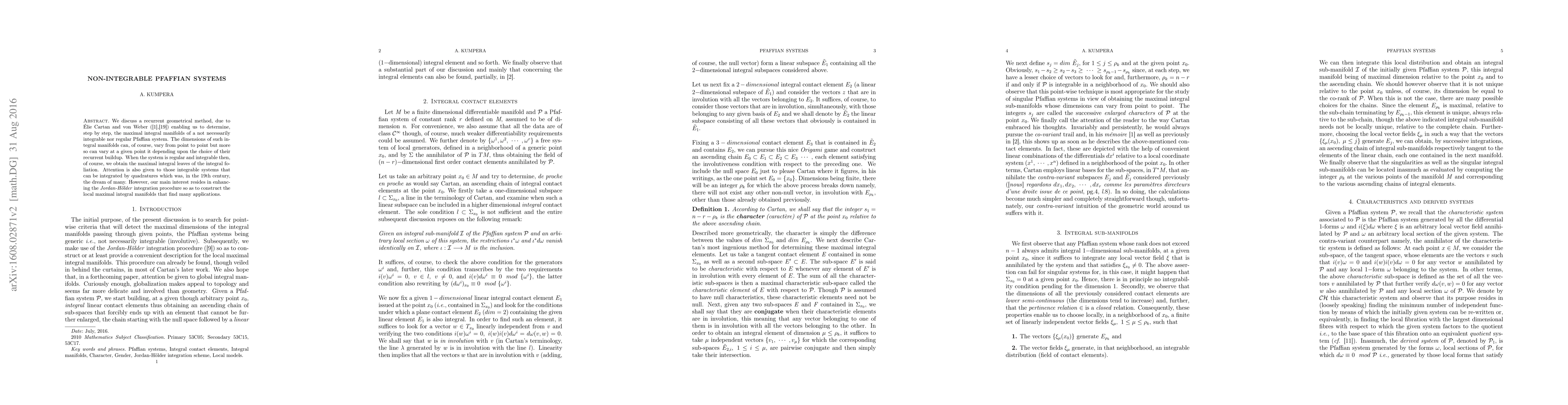 This paper explores a geometrical method developed by Cartan and von Weber for determining maximal integral manifolds of non-integrable Pfaffian systems. It focuses on constructing local maximal integral manifolds, enhancing the Jordan-Hölder integration procedure, and discusses applications in non-integrable systems.