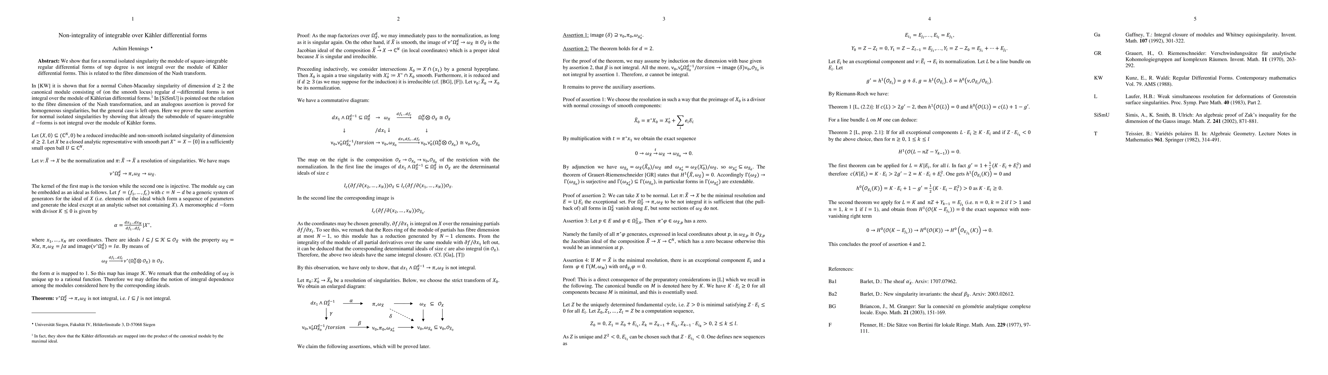 Summary: The paper demonstrates that the module of square-integrable regular differential forms of top degree at a normal isolated singularity is not integral over the module of Kähler differential forms, linking this result to the fibre dimension of the Nash transform.