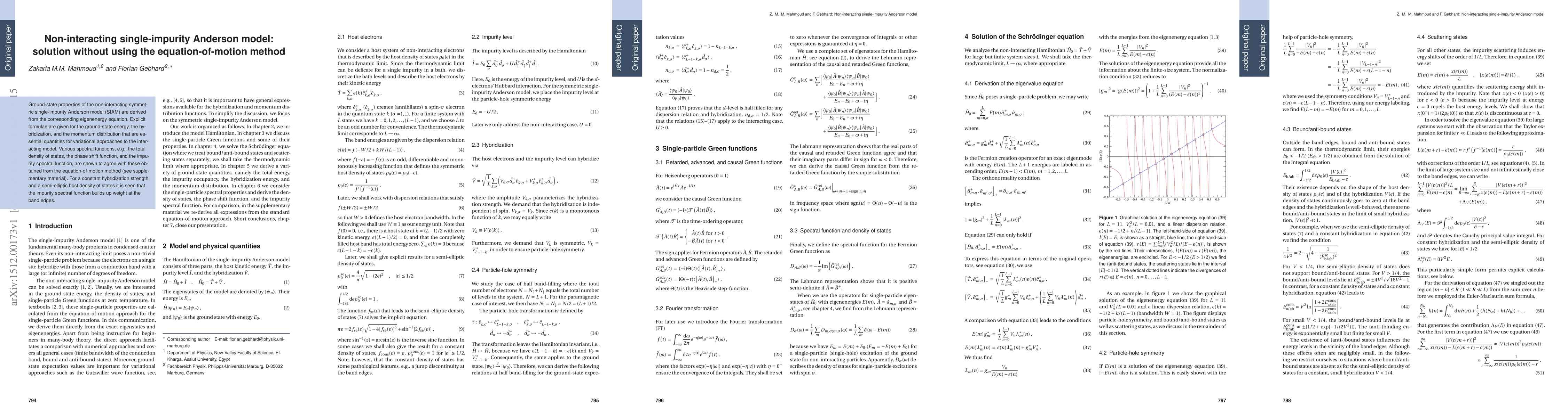 This paper derives ground-state properties of the non-interacting symmetric single-impurity Anderson model (SIAM) directly from its eigenenergy equation, providing explicit formulae for ground-state energy, hybridization, and momentum distribution without using the equation-of-motion method. The derived spectral functions align with those obtained from the equation-of-motion method.