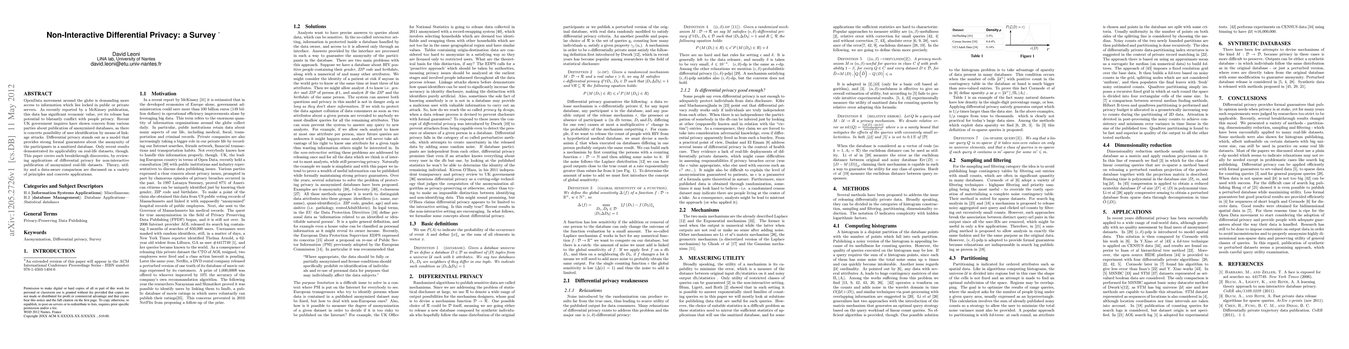 This paper surveys recent advancements in non-interactive differential privacy, focusing on its application to the publication of anonymized real-life datasets. It discusses the theoretical underpinnings, utility, and practical implementations, highlighting how differential privacy provides robust privacy guarantees against linkage attacks.