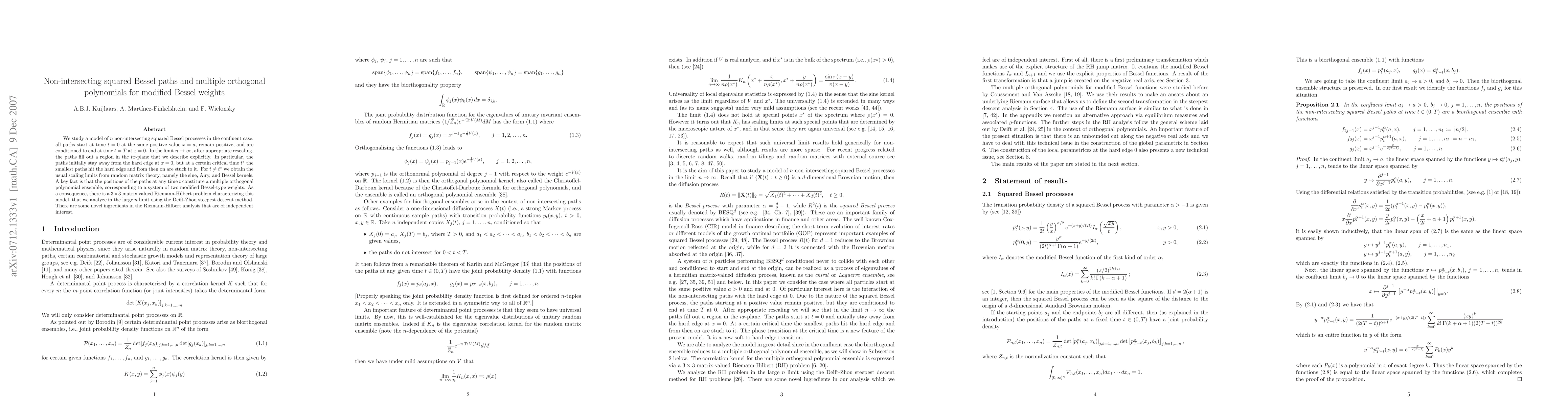 This paper investigates $n$ non-intersecting squared Bessel processes conditioned to start and end at specific points, revealing a region filling pattern and a critical time when paths adhere to the boundary. The ensemble of path positions at any time forms a multiple orthogonal polynomial system with modified Bessel weights, leading to a $3 \times 3$ matrix Riemann-Hilbert problem analyzed via the Deift-Zhou method.