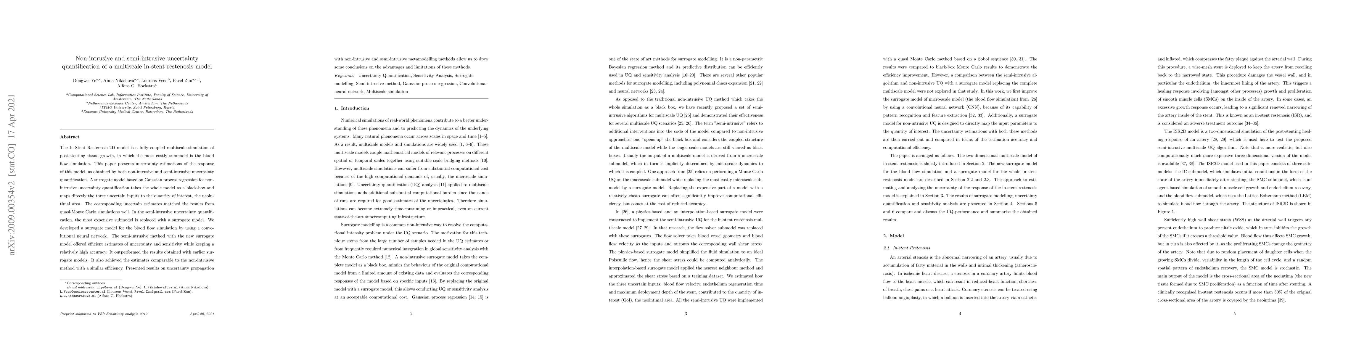 The research employs non-intrusive and semi-intrusive uncertainty quantification methods for a multiscale in-stent restenosis model, using surrogate modeling techniques such as Gaussian processes and convolutional neural networks.