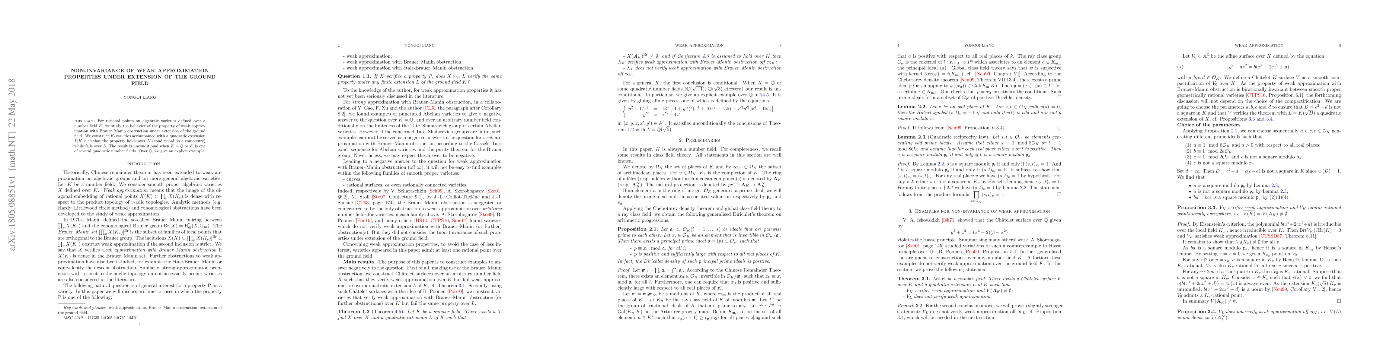 For rational points on algebraic varieties defined over a number field $K$, we study the behavior of the property of weak approximation with Brauer-Manin obstruction under extension of the ground field. We construct K-varieties accompanied with a quadratic extension $L/K$ such that the property holds over $K$ (conditional on a conjecture) while fails over $L$. The result is unconditional when $K = \mathbb{Q}$ or $K$ is one of several quadratic number fields. Over $\mathbb{Q}$, we give an explicit example.