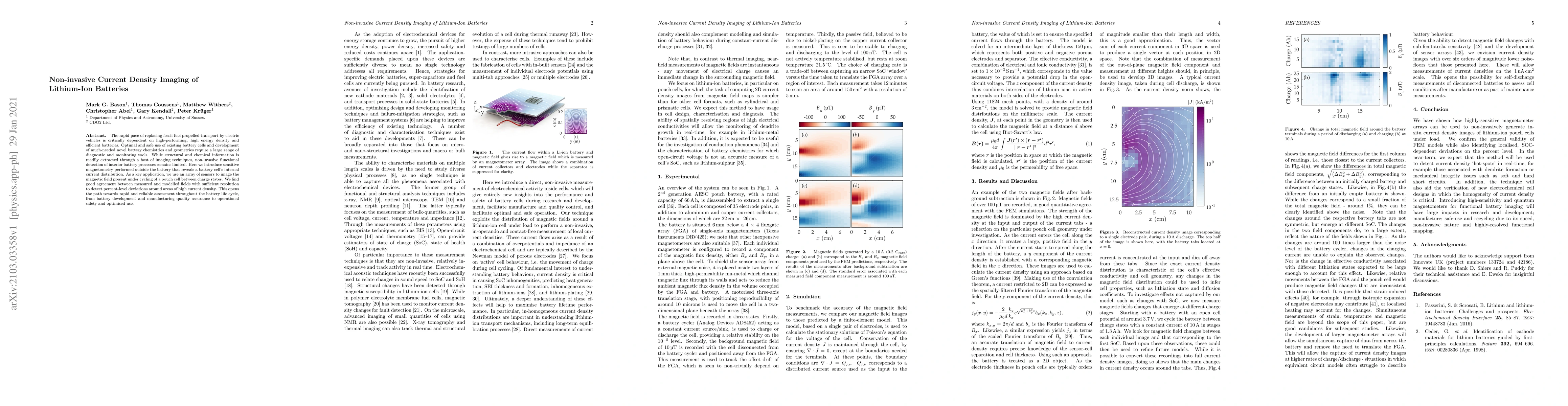 The rapid pace of replacing fossil fuel propelled transport by electric vehicles is critically dependent on high-performing, high energy density and efficient batteries. Optimal and safe use of existing battery cells and development of much-needed novel battery chemistries and geometries require a large range of diagnostic and monitoring tools. While structural and chemical information is readily extracted through a host of imaging techniques, non-invasive functional detection of interior battery processes remains limited. Here we introduce sensitive magnetometry performed outside the battery that reveals a battery cell's internal current distribution. As a key application, we use an array of sensors to image the magnetic field present under cycling of a pouch cell between charge states. We find good agreement between measured and modelled fields with sufficient resolution to detect percent-level deviations around areas of high current density. This opens the path towards rapid and reliable assessment throughout the battery life cycle, from battery development and manufacturing quality assurance to operational safety and optimised use.