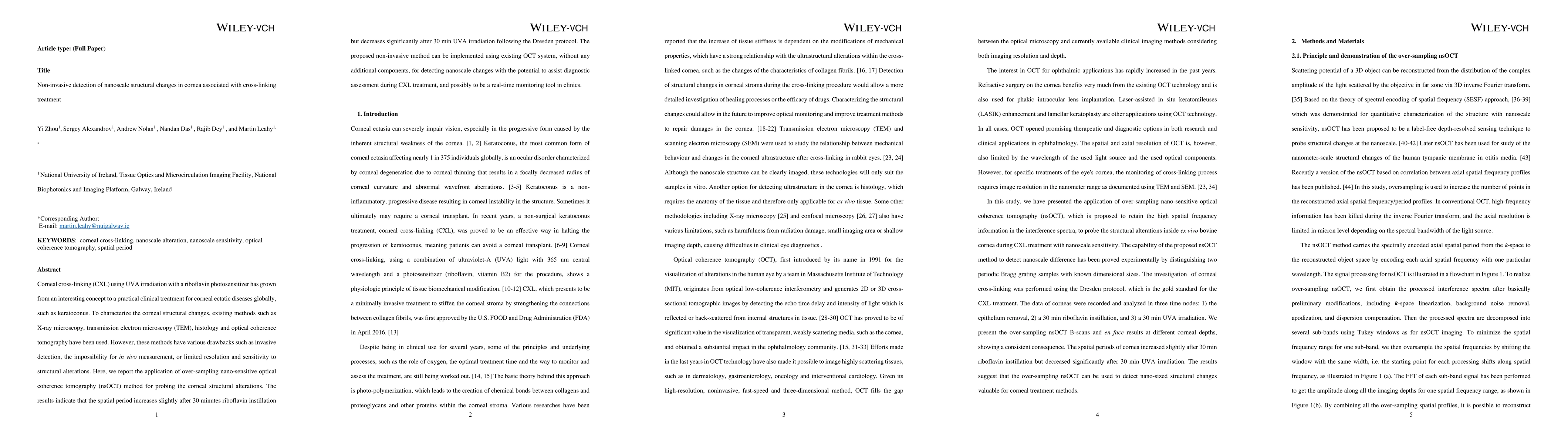 Researchers developed a non-invasive method to detect nanoscale structural changes in cornea after cross-linking treatment using nano-sensitive optical coherence tomography. This method could aid in diagnostic assessment during CXL treatment and potentially monitor the treatment in real-time.