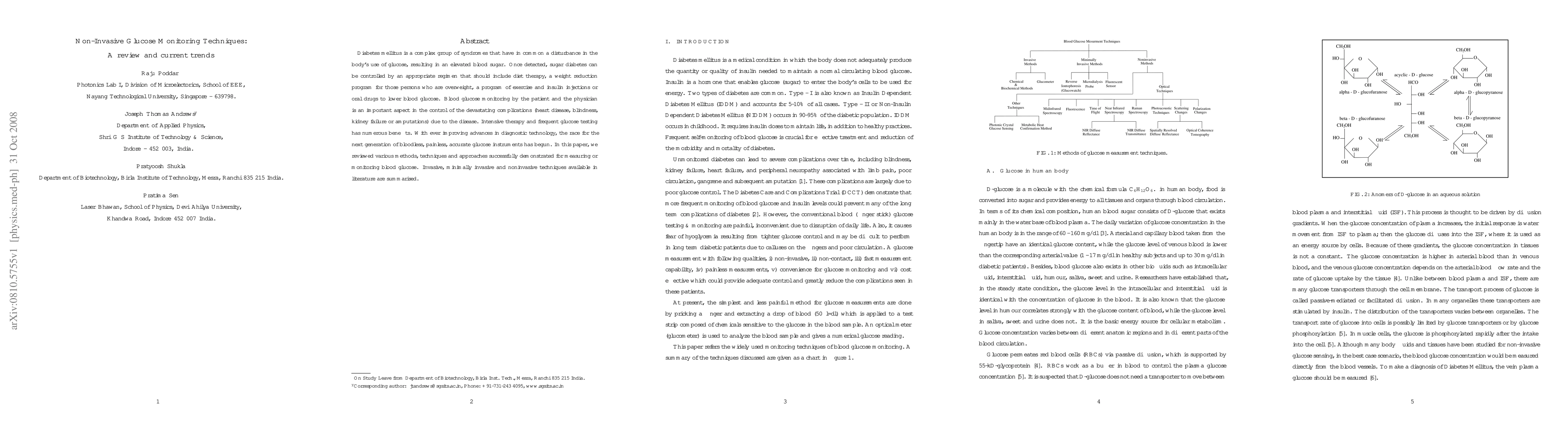 This paper reviews various glucose monitoring techniques, emphasizing non-invasive methods, to control diabetes mellitus and prevent complications. It highlights the advancements in diagnostic technology aimed at developing bloodless, painless, and accurate glucose monitoring instruments.