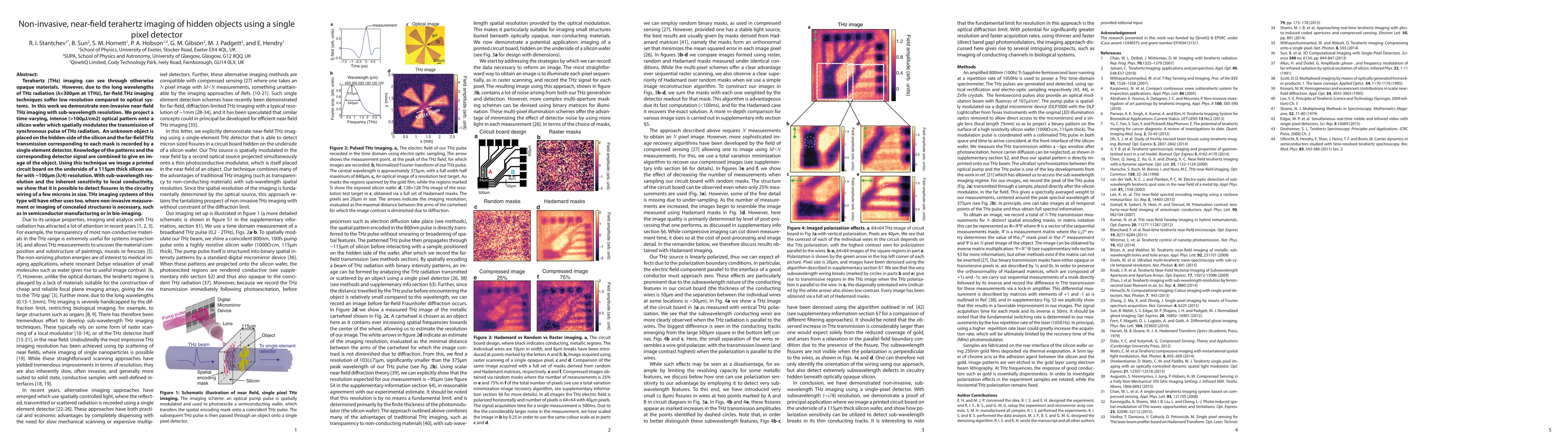 This research demonstrates a non-invasive near-field terahertz imaging technique using a single-pixel detector to achieve subwavelength resolution, capable of detecting fine fissures in printed circuit boards through a silicon wafer. The method could prove valuable in high-resolution, non-invasive imaging for semiconductor manufacturing and bio-imaging.