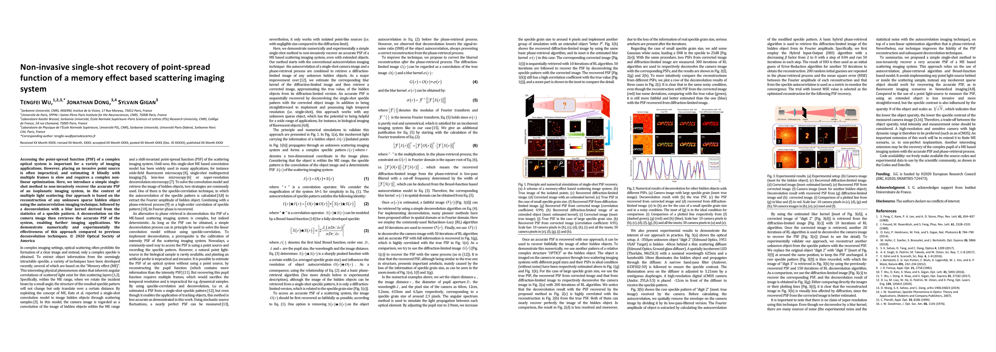 Accessing the point-spread function (PSF) of a complex optical system is important for a variety of imaging applications. However, placing an invasive point source is often impractical, and estimating it blindly with multiple frames is slow and requires a complex non-linear optimization. Here, we introduce a simple single-shot method to non-invasively recover the accurate PSF of an isoplanatic imaging system, in the context of multiple light scattering. Our approach is based on the reconstruction of any unknown sparse hidden object using the autocorrelation imaging technique, followed by a deconvolution with a blur kernel derived from the statistics of a speckle pattern. A deconvolution on the camera image then retrieves the accurate PSF of the system, enabling further imaging applications. We demonstrate numerically and experimentally the effectiveness of this approach compared to previous deconvolution techniques.