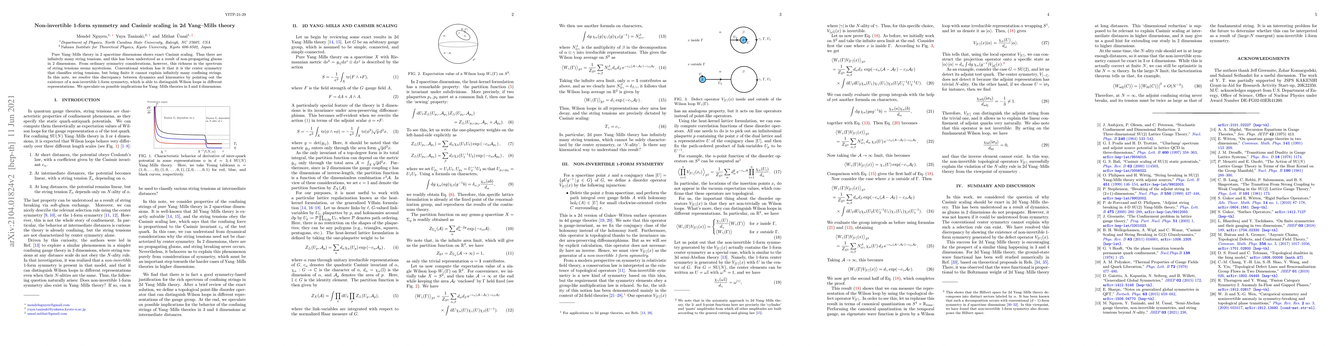 This paper demonstrates that the exact Casimir scaling in 2d Yang-Mills theory arises from a non-invertible 1-form symmetry, resolving the discrepancy between the infinite string tensions and conventional center symmetry. The findings may have implications for understanding Yang-Mills theories in higher dimensions.