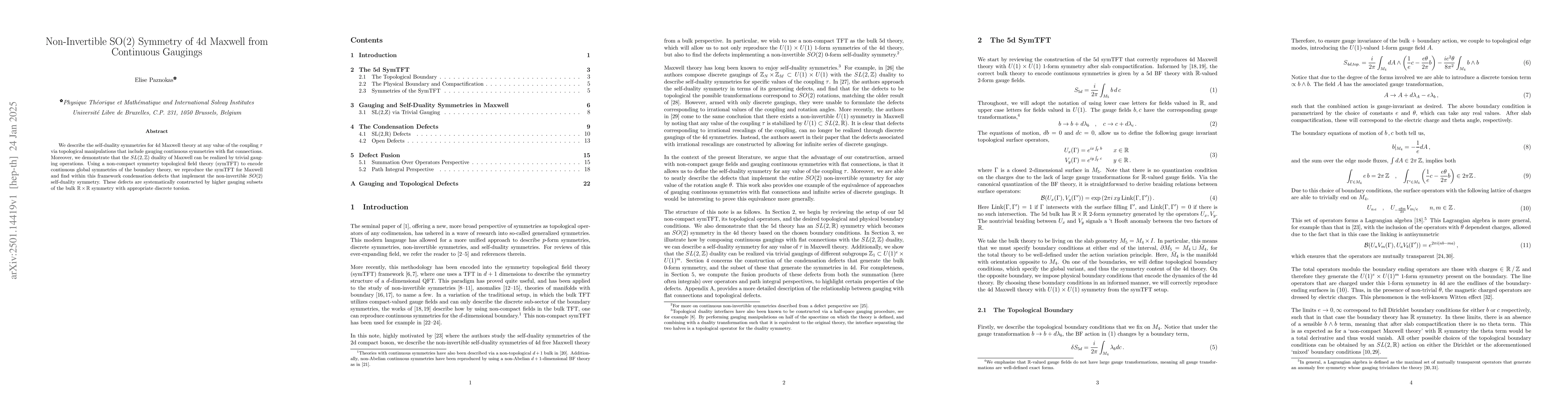 Summary: This paper explores the self-duality symmetries in 4d Maxwell theory through continuous gauging, demonstrating the $SL(2,\mathbb{Z})$ duality via trivial gauging and identifying non-invertible $SO(2)$ symmetry implemented by condensation defects constructed via higher gauging.