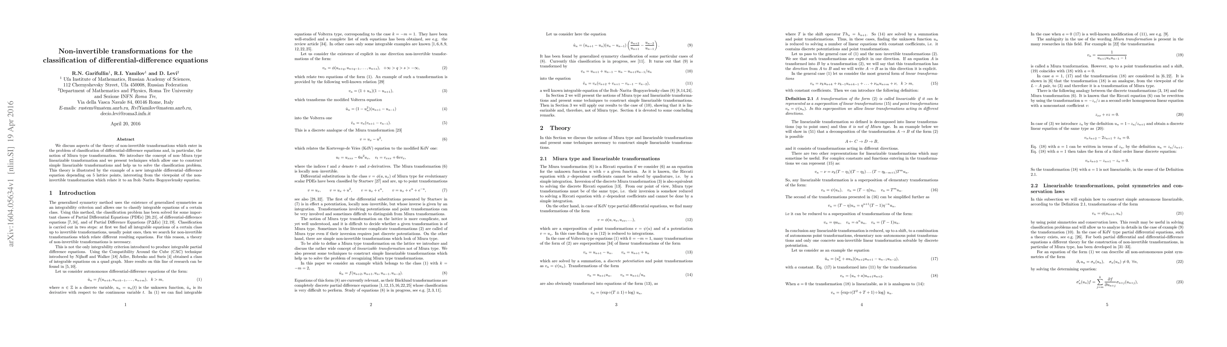 This paper explores non-invertible transformations, particularly Miura type transformations, for classifying differential-difference equations. It introduces non-Miura type linearizable transformations and provides techniques to construct simple linearizable transformations, illustrated by a new integrable differential-difference equation related to an Itoh-Narita-Bogoyavlensky equation.