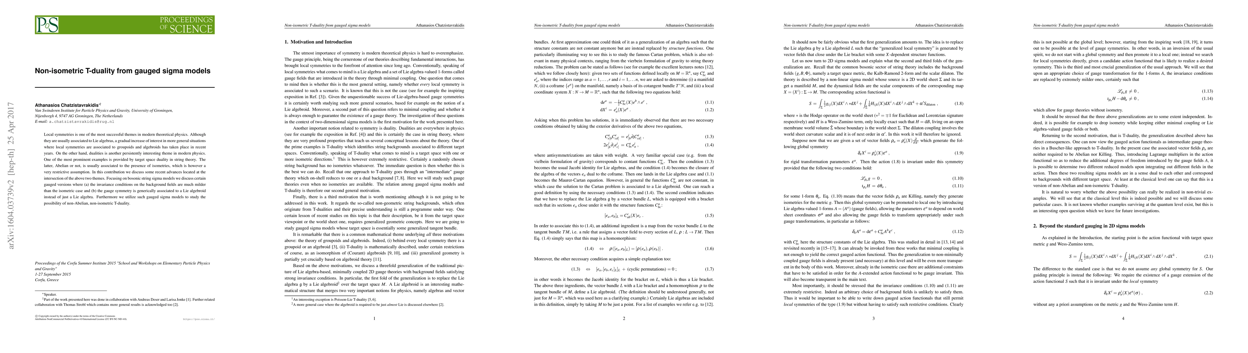 Local symmetries is one of the most successful themes in modern theoretical physics. Although they are usually associated to Lie algebras, a gradual increase of interest in more general situations where local symmetries are associated to groupoids and algebroids has taken place in recent years. On the other hand, dualities is another persistently interesting theme in modern physics. One of the most prominent examples is provided by target space duality in string theory. The latter, Abelian or not, is usually associated to the presence of isometries, which is however a very restrictive assumption. In this contribution we discuss some recent advances located at the intersection of the above two themes. Focusing on bosonic string sigma models we discuss certain gauged versions where (a) the invariance conditions on the background fields are much milder than the isometric case and (b) the gauge symmetry is generically associated to a Lie algebroid instead of just a Lie algebra. Furthermore we utilize such gauged sigma models to study the possibility of non-Abelian, non-isometric T-duality.