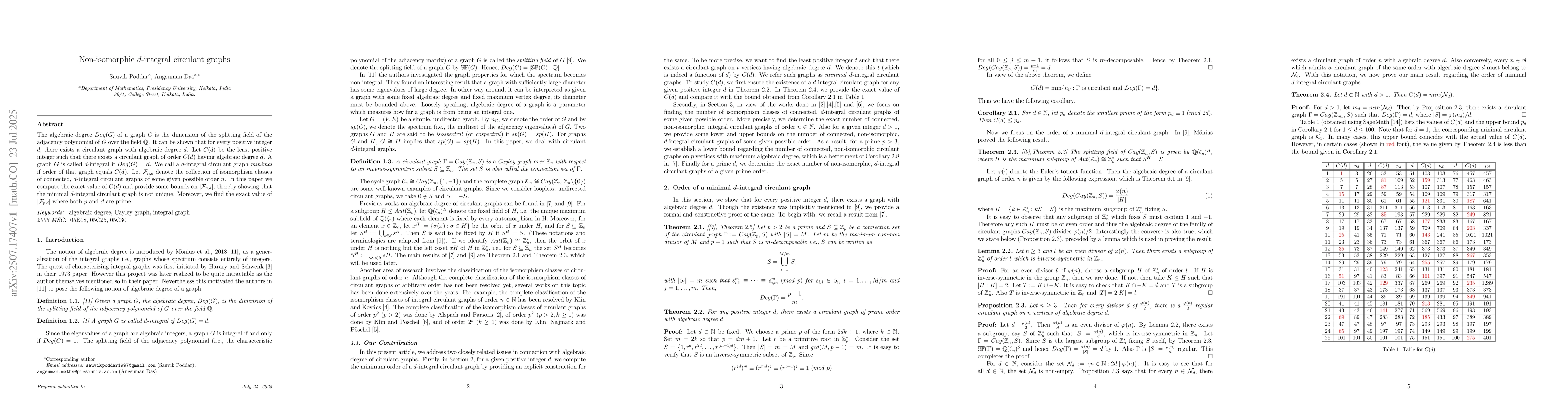 The algebraic degree $Deg(G)$ of a graph $G$ is the dimension of the splitting field of the adjacency polynomial of $G$ over the field $\mathbb{Q}$. It can be shown that for every positive integer $d$, there exists a circulant graph with algebraic degree $d$. Let $C(d)$ be the least positive integer such that there exists a circulant graph of order $C(d)$ having algebraic degree $d$. A graph $G$ is called $d$-integral if $Deg(G)=d$. We call a $d$-integral circulant graph \textit{minimal} if order of that graph equals $C(d)$. Let $\mathcal{F}_{n,d}$ denote the collection of isomorphism classes of connected, $d$-integral circulant graphs of some given possible order $n$. In this paper we compute the exact value of $C(d)$ and provide some bounds on $|\mathcal{F}_{n,d}|$, thereby showing that the minimal $d$-integral circulant graph is not unique. Moreover, we find the exact value of $|\mathcal{F}_{p,d}|$ where both $p$ and $d$ are prime.