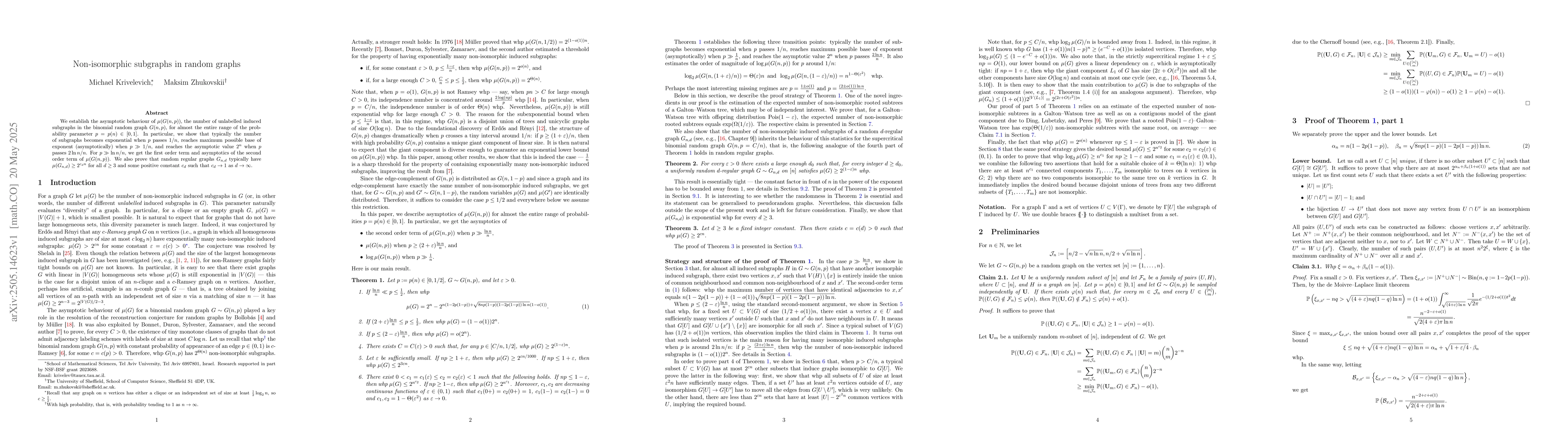 The paper analyzes the asymptotic behavior of unlabeled induced subgraphs in binomial random graphs G(n,p) across various ranges of the probability parameter p.