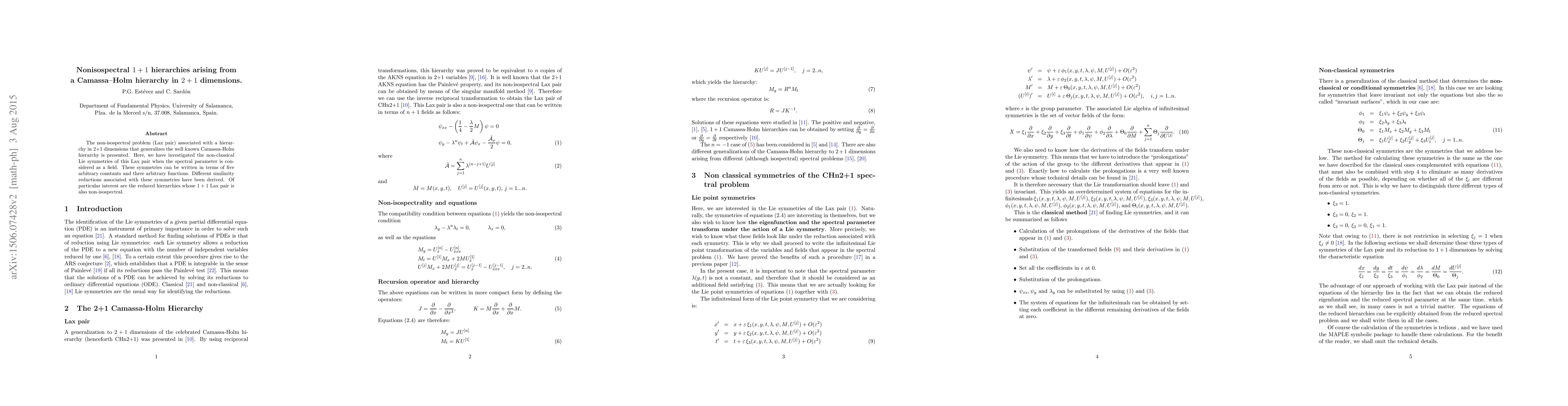 The non-isospectral problem (Lax pair) associated with a hierarchy in 2+1 dimensions that generalizes the well known Camassa-Holm hierarchy is presented. Here, we have investigated the non-classical Lie symmetries of this Lax pair when the spectral parameter is considered as a field. These symmetries can be written in terms of five arbitrary constants and three arbitrary functions. Different similarity reductions associated with these symmetries have been derived. Of particular interest are the reduced hierarchies whose $1+1$ Lax pair is also non-isospectral.