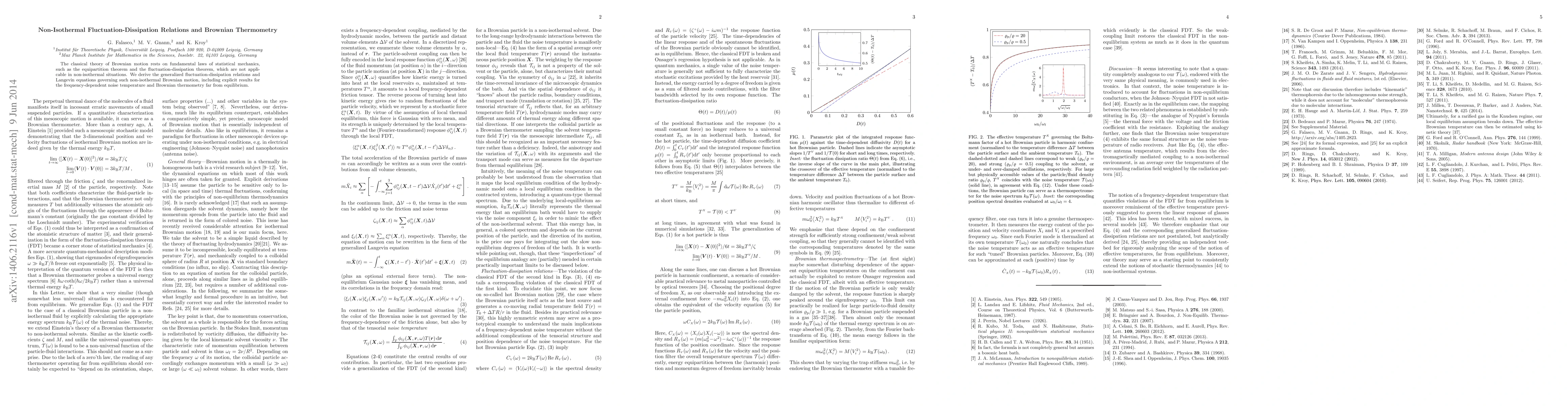 The paper presents analytical derivations of generalized fluctuation-dissipation relations and Langevin equations for non-isothermal Brownian motion, including frequency-dependent noise temperature and Brownian thermometry far from equilibrium.