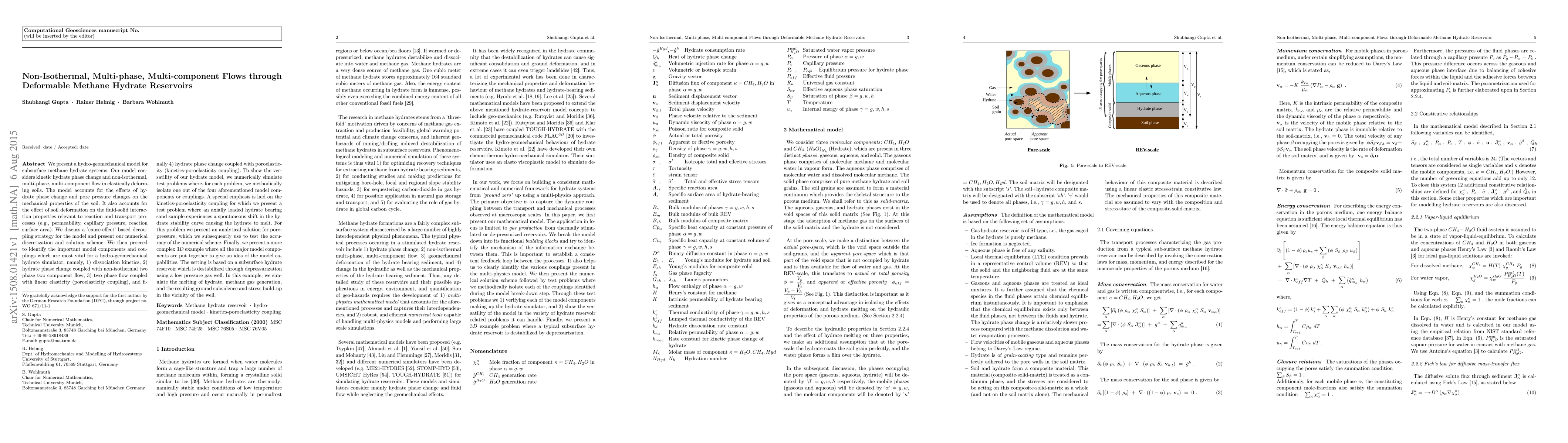 This paper presents a hydro-geomechanical model for methane hydrate systems, focusing on kinetic hydrate phase change and non-isothermal multi-phase flow in deformable soils. It highlights key model components and couplings, particularly the kinetics-poroelasticity coupling, and demonstrates their importance through numerical examples, including a 3D simulation of depressurization-induced hydrate melting and ground subsidence.