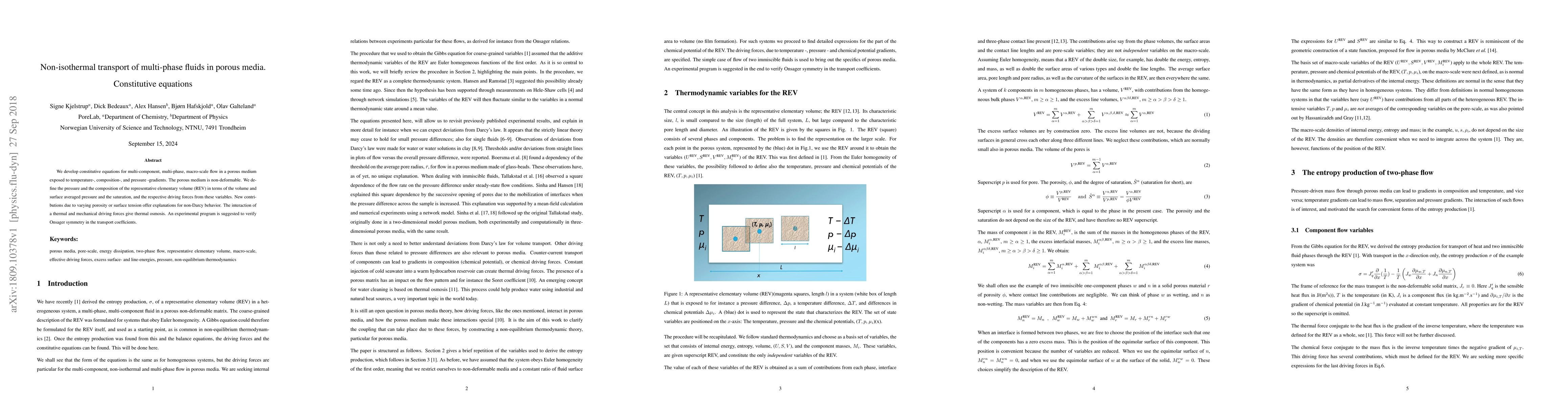 This paper develops constitutive equations for multi-phase fluid transport in non-deformable porous media under varying temperature, composition, and pressure. It introduces mechanisms explaining non-Darcy behavior and thermal osmosis, and proposes an experimental study to verify Onsager symmetry in transport coefficients.