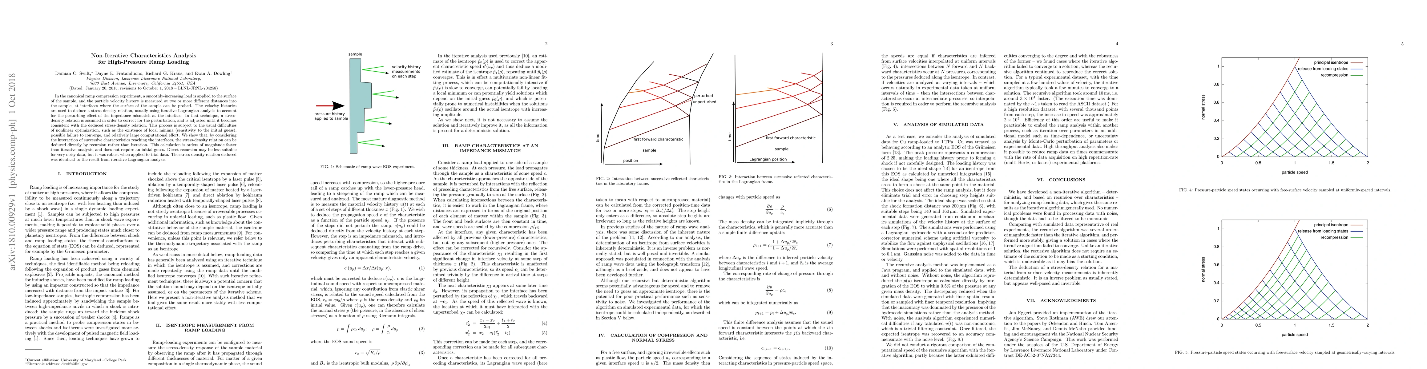 In the canonical ramp compression experiment, a smoothly-increasing load is applied to the surface of the sample, and the particle velocity history is measured at two or more different distances into the sample, at interfaces where the surface of the sample can be probed. The velocity histories are used to deduce a stress-density relation, usually using iterative Lagrangian analysis to account for the perturbing effect of the impedance mismatch at the interface. In that technique, a stress- density relation is assumed in order to correct for the perturbation, and is adjusted until it becomes consistent with the deduced stress-density relation. This process is subject to the usual difficulties of nonlinear optimization, such as the existence of local minima (sensitivity to the initial guess), possible failure to converge, and relatively large computational effort. We show that, by considering the interaction of successive characteristics reaching the interfaces, the stress-density relation can be deduced directly by recursion rather than iteration. This calculation is orders of magnitude faster than iterative analysis, and does not require an initial guess. Direct recursion may be less suitable for very noisy data, but it was robust when applied to trial data. The stress-density relation deduced was identical to the result from iterative Lagrangian analysis.