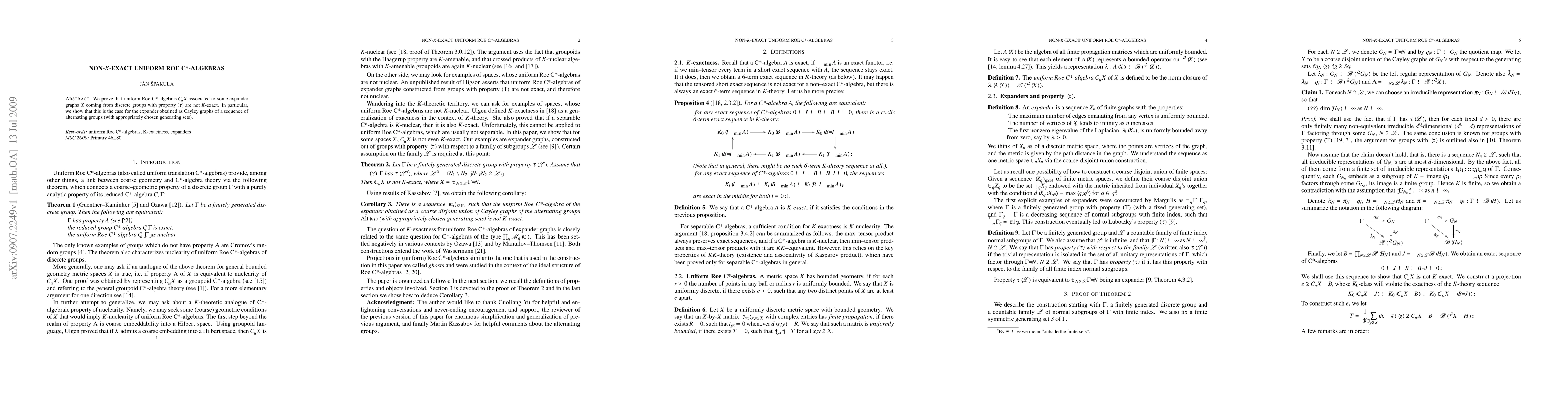 Summary: The study demonstrates that certain uniform Roe C*-algebras derived from expander graphs of discrete groups with property (\tau), specifically those from alternating groups, fail to be K-exact. This finding highlights a significant distinction in the algebraic structure of these C*-algebras.