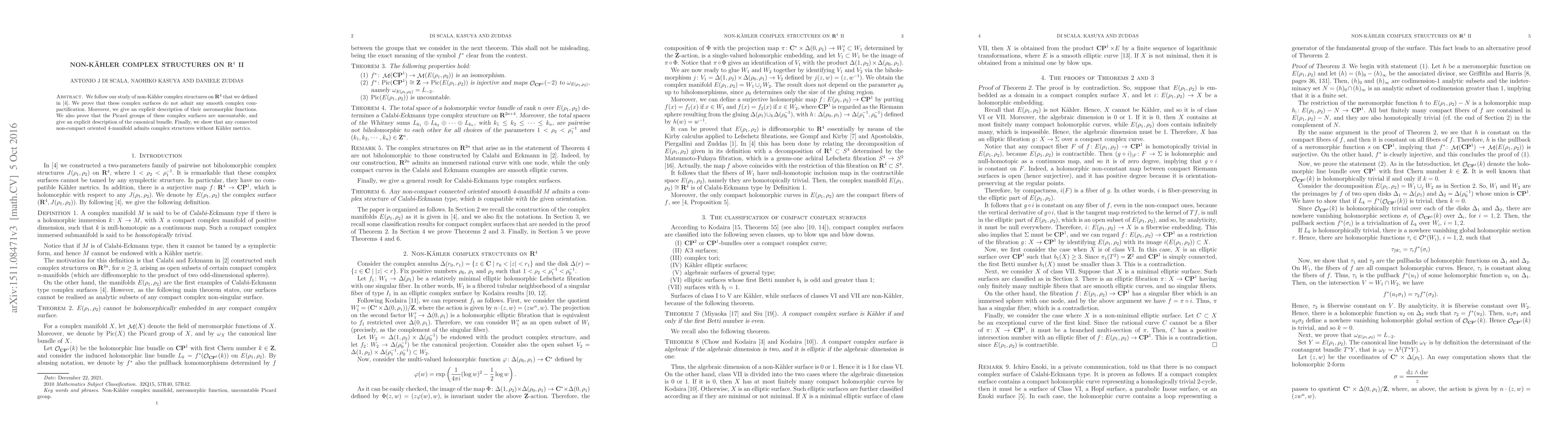 This research paper continues the exploration of non-Kähler complex structures on R^4, proving these surfaces lack smooth compactification. It describes their meromorphic functions and shows uncountable Picard groups with explicit canonical bundle description. The study also confirms that any connected non-compact oriented 4-manifold can support complex structures without Kähler metrics.