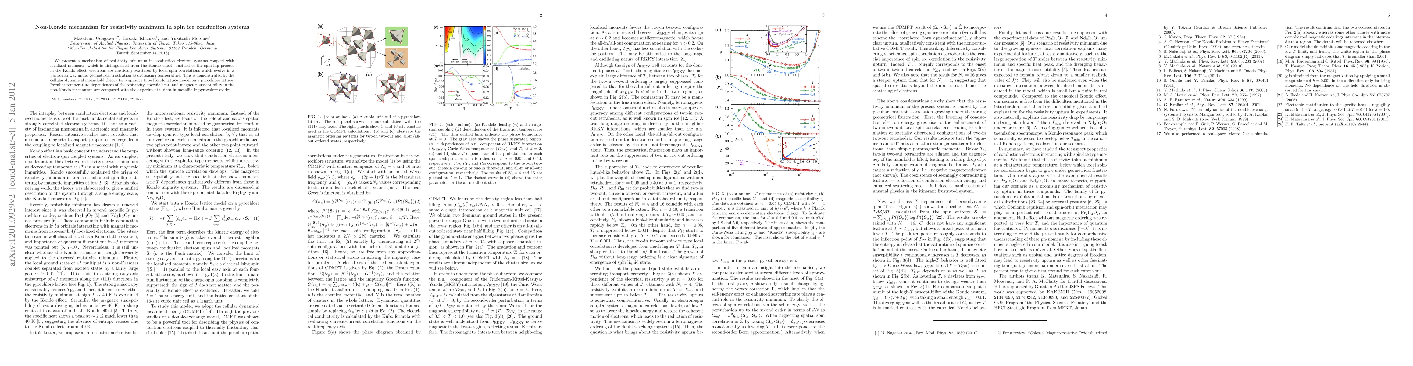 The paper introduces a novel non-Kondo mechanism for resistivity minimum in spin ice conduction systems, demonstrated through CDMFT calculations on a spin-ice type Kondo lattice model on a pyrochlore lattice.