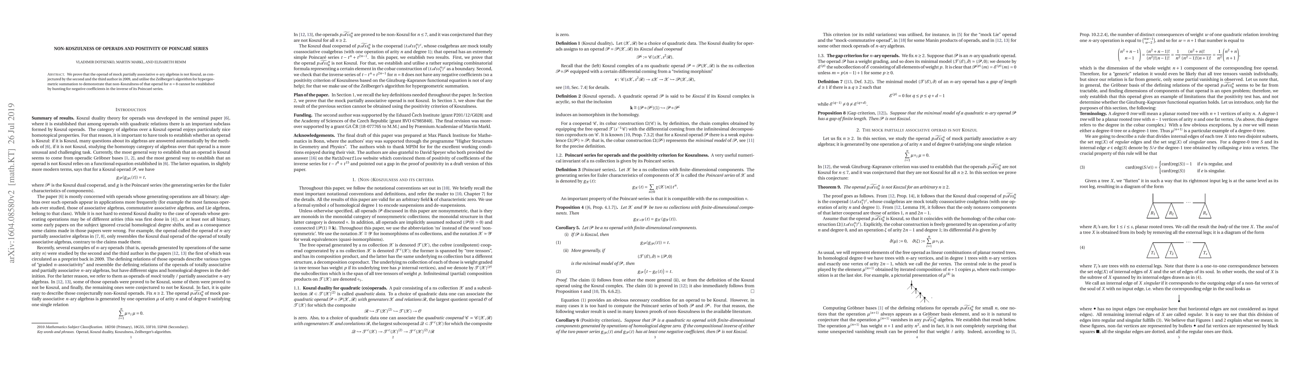 The paper presents a detailed combinatorial lemma and its application in proving non-Koszulness, alongside the use of Zeilberger's algorithm for summation.