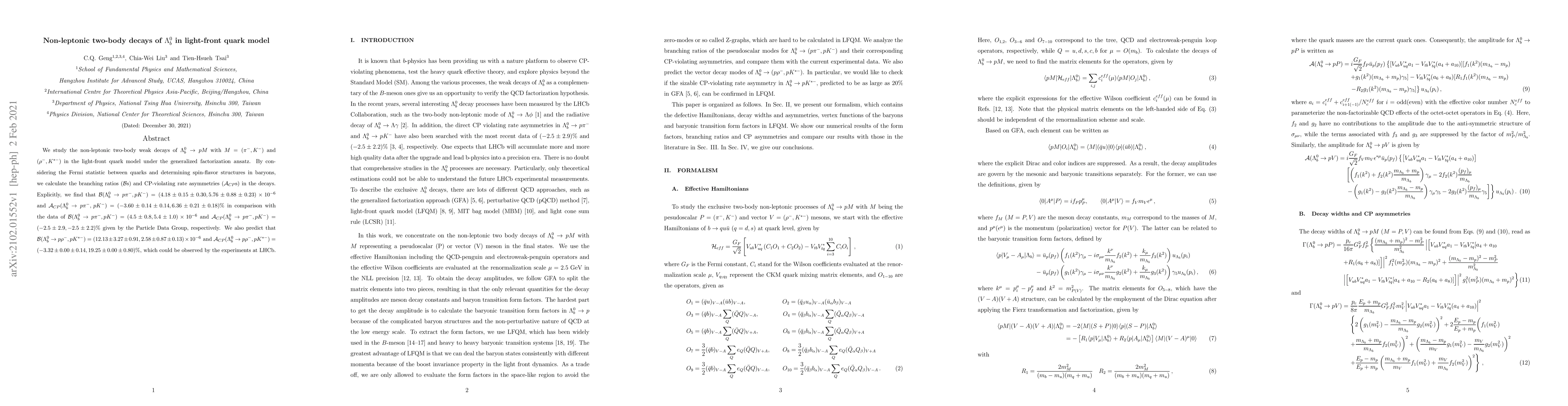 This paper investigates the non-leptonic two-body decays of $\Lambda_b^0$ using the light-front quark model, calculating branching ratios and CP-violating asymmetries for decays to $p\pi^-$, $pK^-$, $p\rho^-$, and $pK^{*-}$. The results show good agreement with existing data and provide predictions for future experimental observations at LHCb.