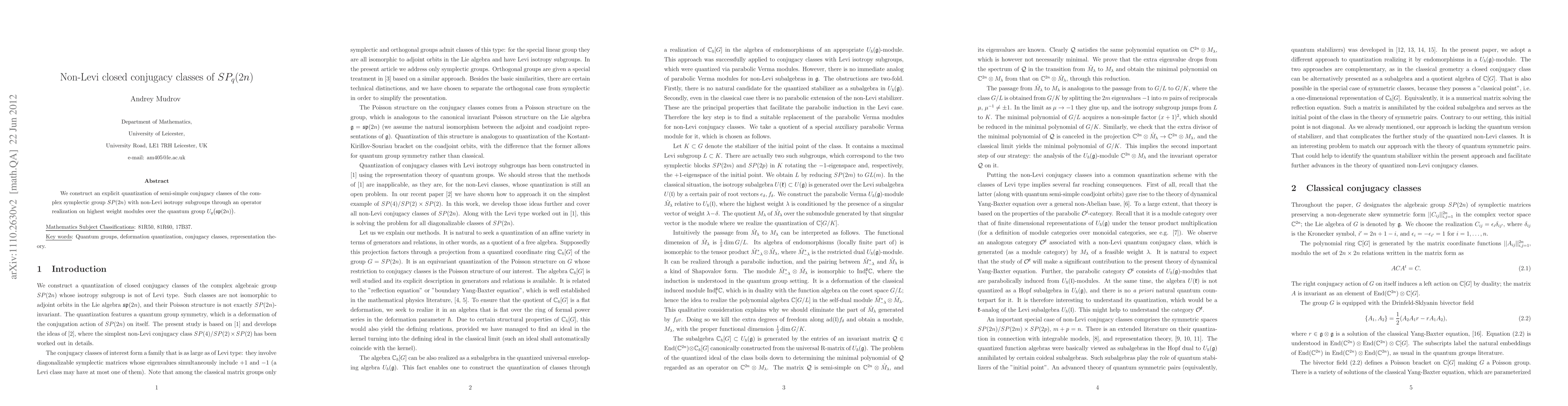 This paper presents a method to explicitly quantify closed conjugacy classes of the complex symplectic group SP(2n) with non-Levi isotropy subgroups via an operator realization on highest weight modules over the quantum group U_q(sp(2n)). The focus is on understanding the structure of these classes in the context of quantum groups.