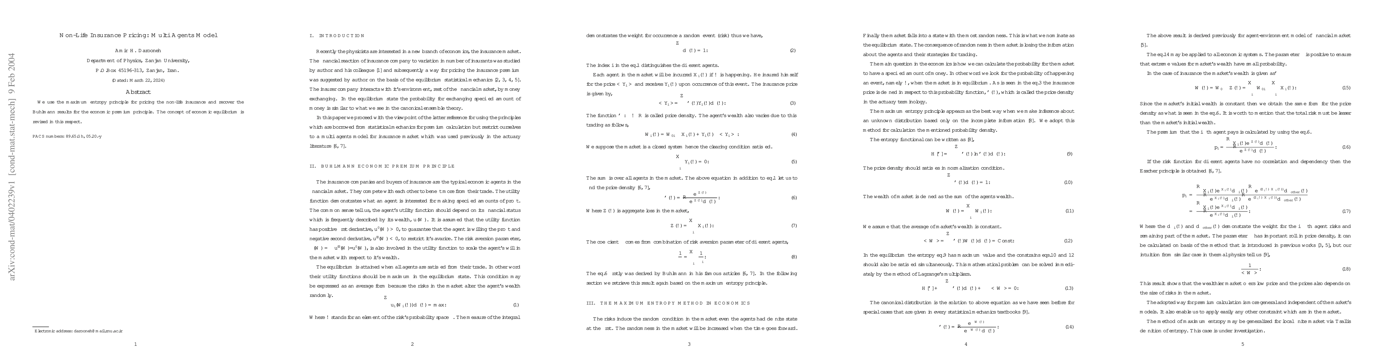 Summary: This paper employs the maximum entropy principle to price non-life insurance, aligning with Bühlmann's economic premium principle, and redefines the concept of economic equilibrium in this context.