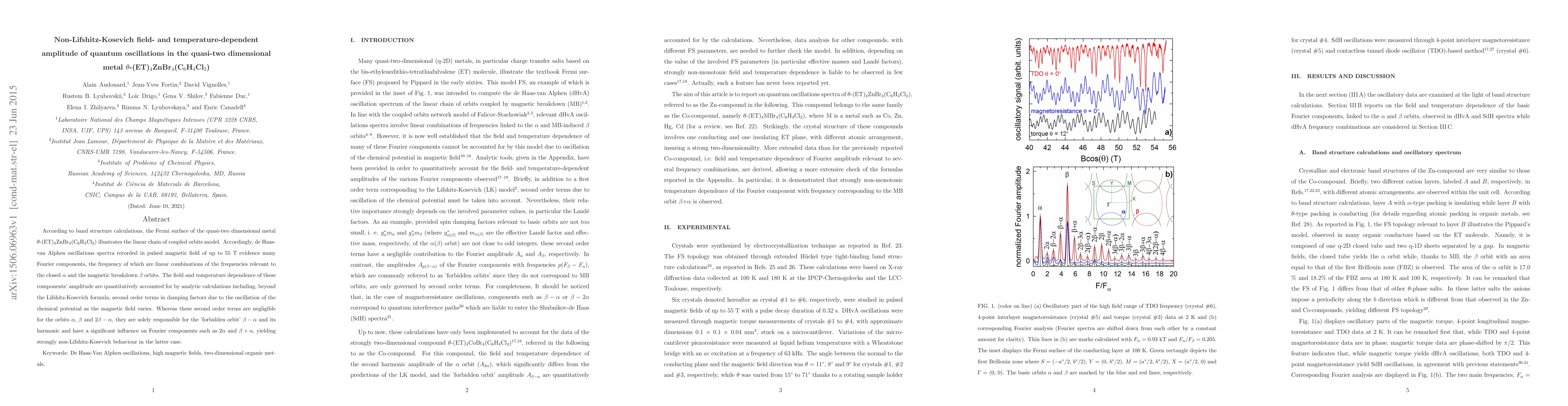 According to band structure calculations, the Fermi surface of the quasi-two dimensional metal $\theta$-(ET) 4 ZnBr 4 (C 6 H 4 Cl 2) illustrates the linear chain of coupled orbits model. Accordingly, de Haas-van Alphen oscillations spectra recorded in pulsed magnetic field of up to 55 T evidence many Fourier components, the frequency of which are linear combinations of the frequencies relevant to the closed $\alpha$ and the magnetic breakdown $\beta$ orbits. The field and temperature dependence of these component's amplitude are quantitatively accounted for by analytic calculations including, beyond the Lifshitz-Kosevich formula, second order terms in damping factors due to the oscillation of the chemical potential as the magnetic field varies. Whereas these second order terms are negligible for the orbits $\alpha$, $\beta$ and 2$\beta$ -- $\alpha$, they are solely responsible for the 'forbidden orbit' $\beta$ -- $\alpha$ and its harmonic and have a significant influence on Fourier components such as 2$\alpha$ and $\beta$ + $\alpha$, yielding strongly non-Lifshitz-Kosevich behaviour in the latter case.