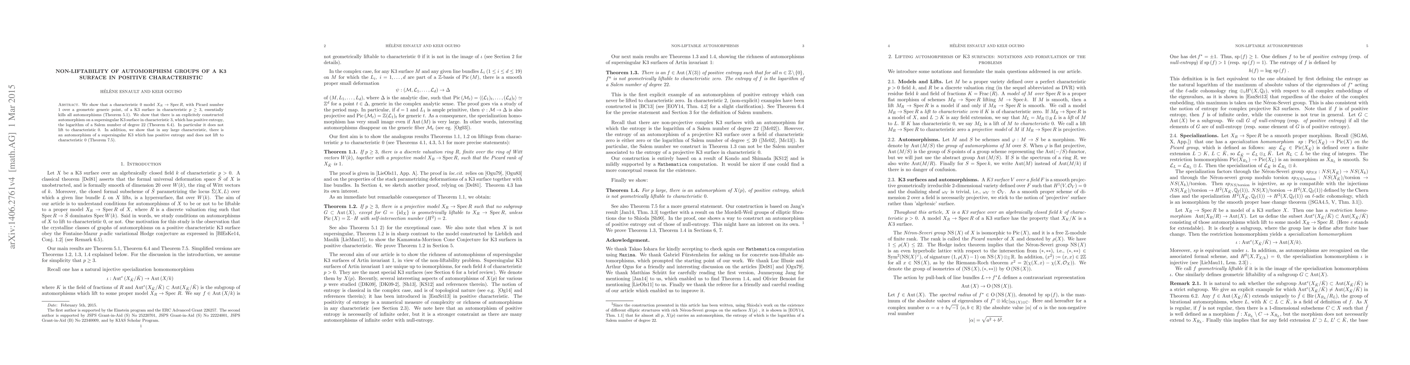 We show that a characteristic $0$ model $X_R\to \Spec R$, with Picard number $1$ over a geometric generic point, of a K3 surface in characteristic $p\ge 3$, essentially kills all automorphisms (Theorem 5.1). We show that there is an explicitely constructed automorphism on a supersingular K3 surface in characteristic $3$, which has positive entropy, the logarithm of a Salem number of degree $22$ (Theorem 6.4). In particular it does not lift to characteristic $0$. In addition, we show that in any large characteristic, there is an automorphism of a supersingular K3 which has positive entropy and does not lift to characteristic $0$ (Theorem 7.5).