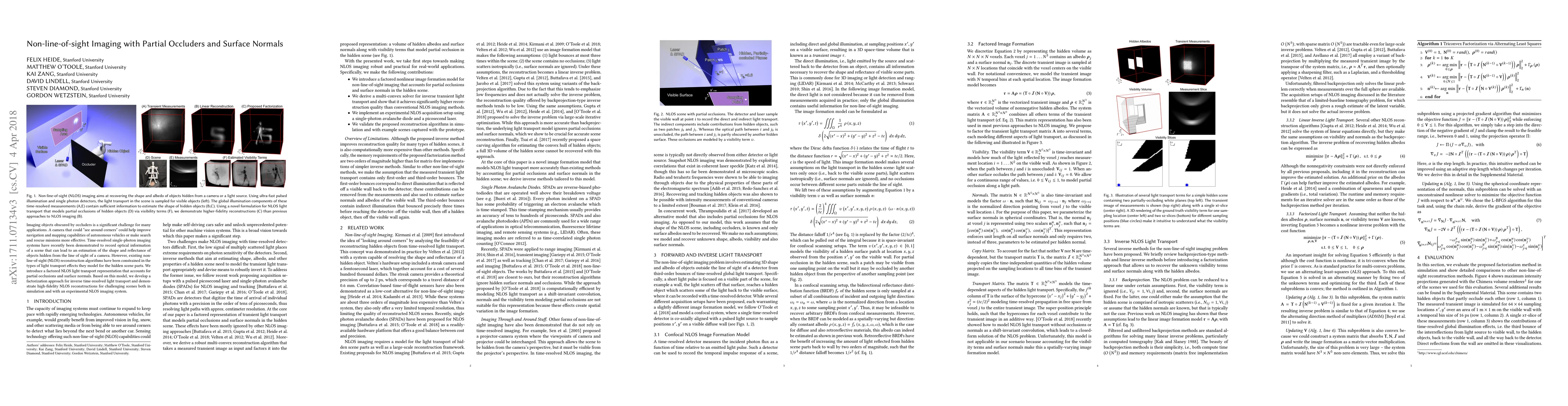 This paper presents a novel method for non-line-of-sight imaging that reconstructs hidden objects using partial occluders and surface normals. It introduces a factored light transport model and demonstrates high-fidelity reconstructions in both simulated and experimental scenarios.