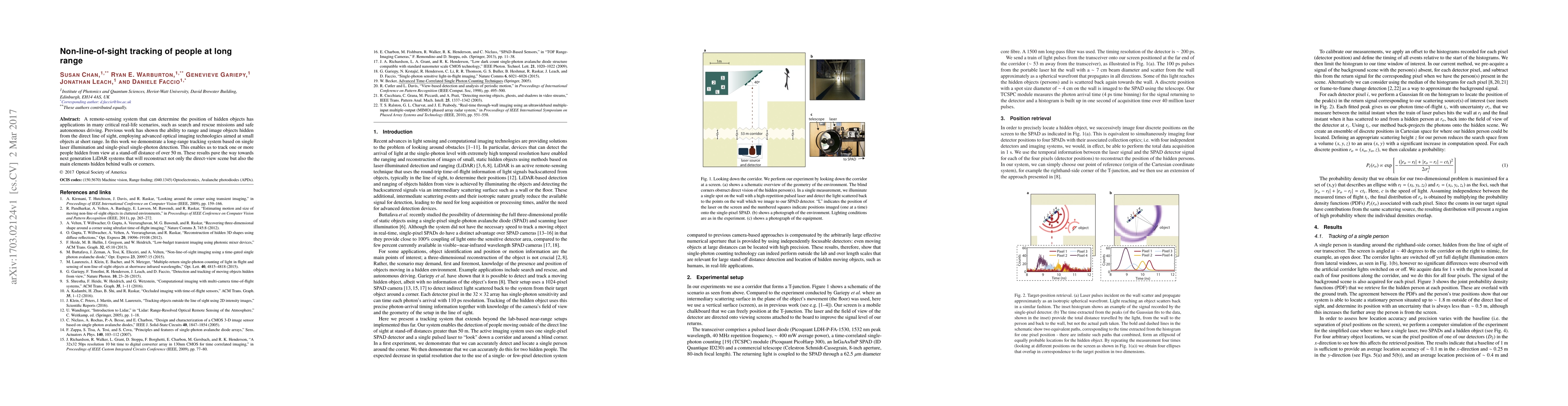 A remote-sensing system that can determine the position of hidden objects has applications in many critical real-life scenarios, such as search and rescue missions and safe autonomous driving. Previous work has shown the ability to range and image objects hidden from the direct line of sight, employing advanced optical imaging technologies aimed at small objects at short range. In this work we demonstrate a long-range tracking system based on single laser illumination and single-pixel single-photon detection. This enables us to track one or more people hidden from view at a stand-off distance of over 50~m. These results pave the way towards next generation LiDAR systems that will reconstruct not only the direct-view scene but also the main elements hidden behind walls or corners.