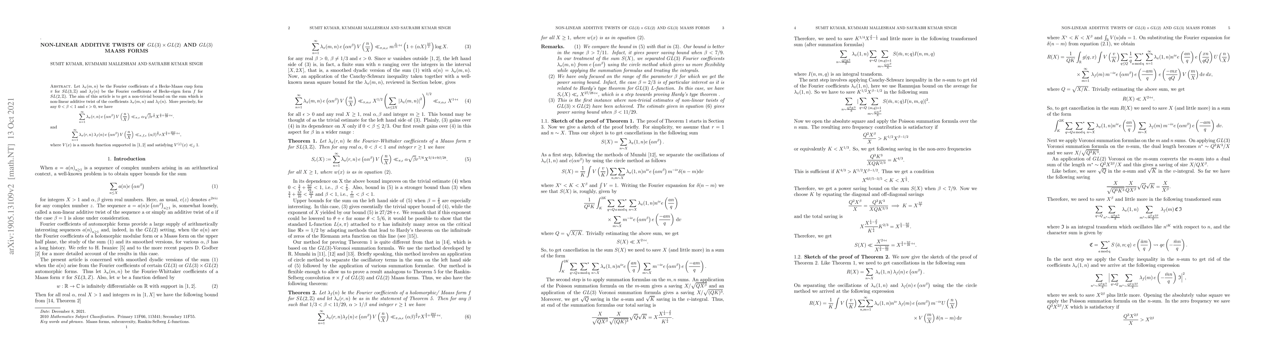 This paper provides non-trivial bounds on the non-linear additive twist of Fourier coefficients for $GL(3) \times GL(2)$ and $GL(3)$ Maass forms. Specifically, it establishes bounds for sums involving the twisted coefficients of these forms, showing dependence on parameters $r$, $\alpha$, $\beta$, and $X$.