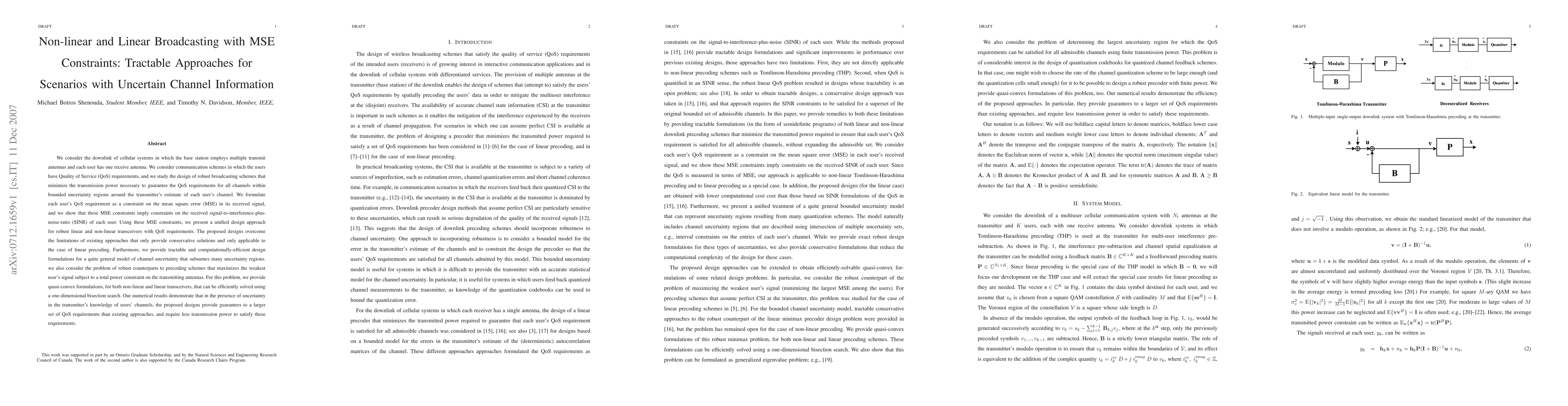 We consider the downlink of a cellular system in which the base station employs multiple transmit antennas, each receiver has a single antenna, and the users specify. We consider communication schemes in which the users have certain Quality of Service (QoS) requirements. We study the design of robust broadcasting schemes that minimize the transmission power necessary to guarantee that the QoS requirements are satisfied for all channels within bounded uncertainty regions around the transmitter's estimate of each user's channel. Each user's QoS requirement is formulated as a constraint on the mean square error (MSE) in its received signal, and we show that these MSE constraints imply constraints on the received SINR. Using the MSE constraints, we present a unified design approach for robust linear and non-linear transceivers with QoS requirements. The proposed designs overcome the limitations of existing approaches that provide conservative designs or are only applicable to the case of linear precoding. Furthermore, we provide computationally-efficient design formulations for a rather general model of channel uncertainty that subsumes many natural choices for the uncertainty region. We also consider the problem of the robust counterpart to precoding schemes that maximize the fidelity of the weakest user's signal subject to a power constraint. For this problem, we provide quasi-convex formulations, for both linear and non-linear transceivers, that can be efficiently solved using a one-dimensional bisection search. Our numerical results demonstrate that in the presence of CSI uncertainty, the proposed designs provide guarantees for a larger range of QoS requirements than the existing approaches, and consume require less transmission power in providing these guarantees.