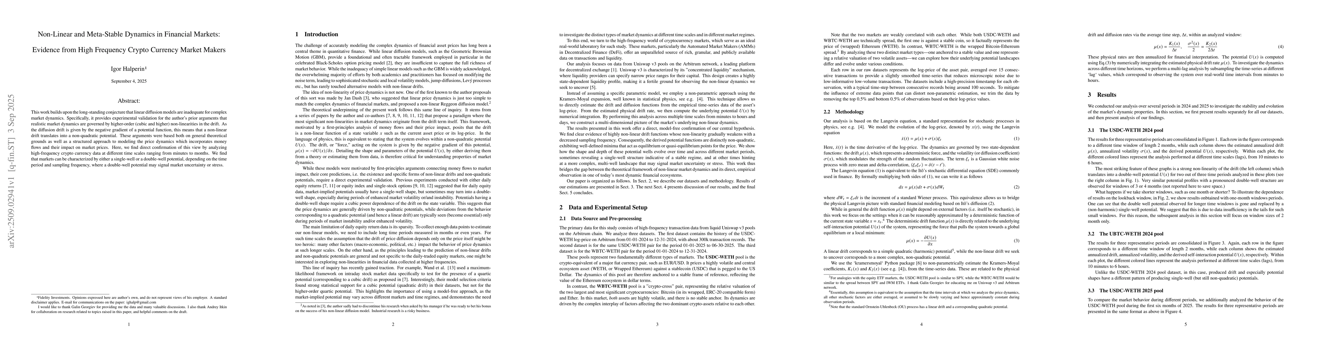 This work builds upon the long-standing conjecture that linear diffusion models are inadequate for complex market dynamics. Specifically, it provides experimental validation for the author's prior arguments that realistic market dynamics are governed by higher-order (cubic and higher) non-linearities in the drift. As the diffusion drift is given by the negative gradient of a potential function, this means that a non-linear drift translates into a non-quadratic potential. These arguments were based both on general theoretical grounds as well as a structured approach to modeling the price dynamics which incorporates money flows and their impact on market prices. Here, we find direct confirmation of this view by analyzing high-frequency crypto currency data at different time scales ranging from minutes to months. We find that markets can be characterized by either a single-well or a double-well potential, depending on the time period and sampling frequency, where a double-well potential may signal market uncertainty or stress.