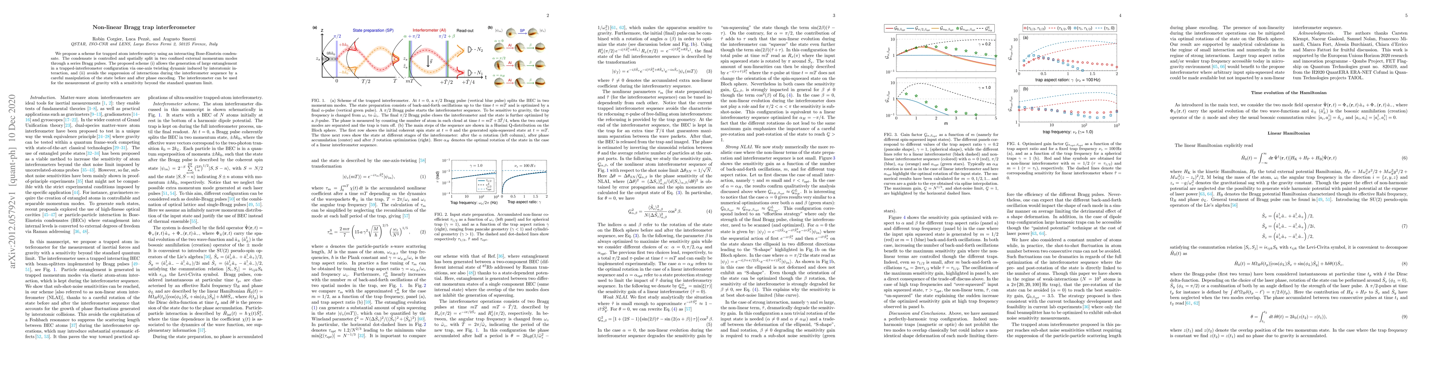 The research proposes a novel atom interferometry method using a Bose-Einstein condensate in a non-linear Bragg trap. It generates large entanglement via one-axis twisting dynamics, maintaining interactions for enhanced sensitivity beyond the standard quantum limit in gravity measurements.