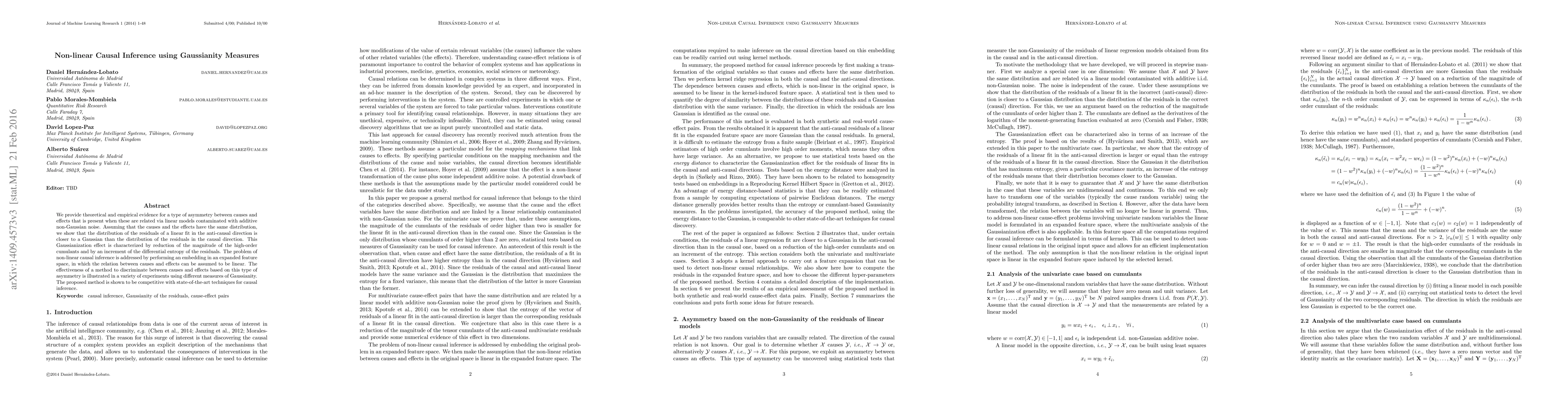 This paper introduces a novel method for non-linear causal inference based on Gaussianity measures, demonstrating that residuals in the anti-causal direction are closer to Gaussian than those in the causal direction. The method embeds data into an expanded feature space to assume linear relationships, showing competitive performance against state-of-the-art techniques.