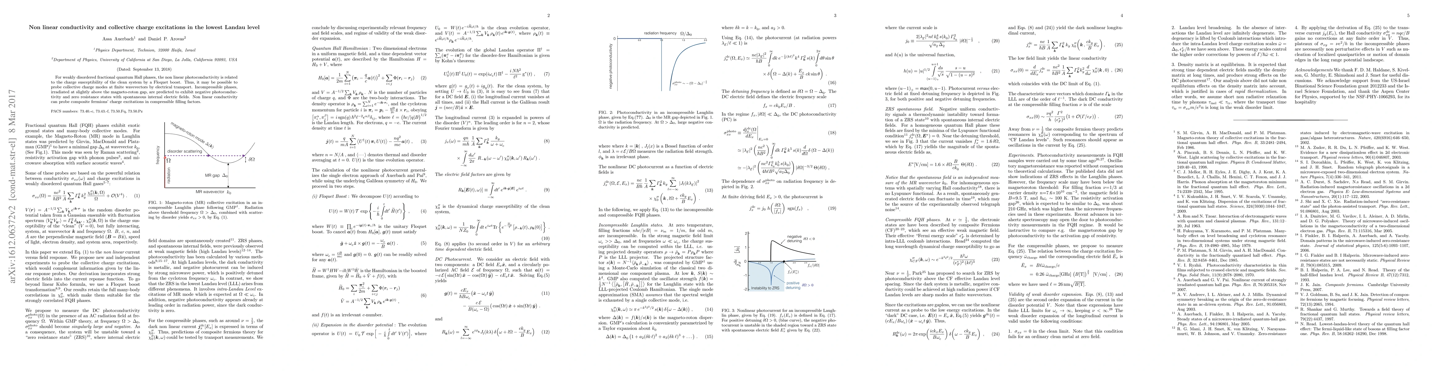For weakly disordered fractional quantum Hall phases, the non linear photoconductivity is related to the charge susceptibility of the clean system by a Floquet boost. Thus, it may be possible to probe collective charge modes at finite wavevectors by electrical transport. Incompressible phases, irradiated at slightly above the magneto-roton gap, are predicted to exhibit negative photoconductivity and zero resistance states with spontaneous internal electric fields. Non linear conductivity can probe composite fermions' charge excitations in compressible filling factors.