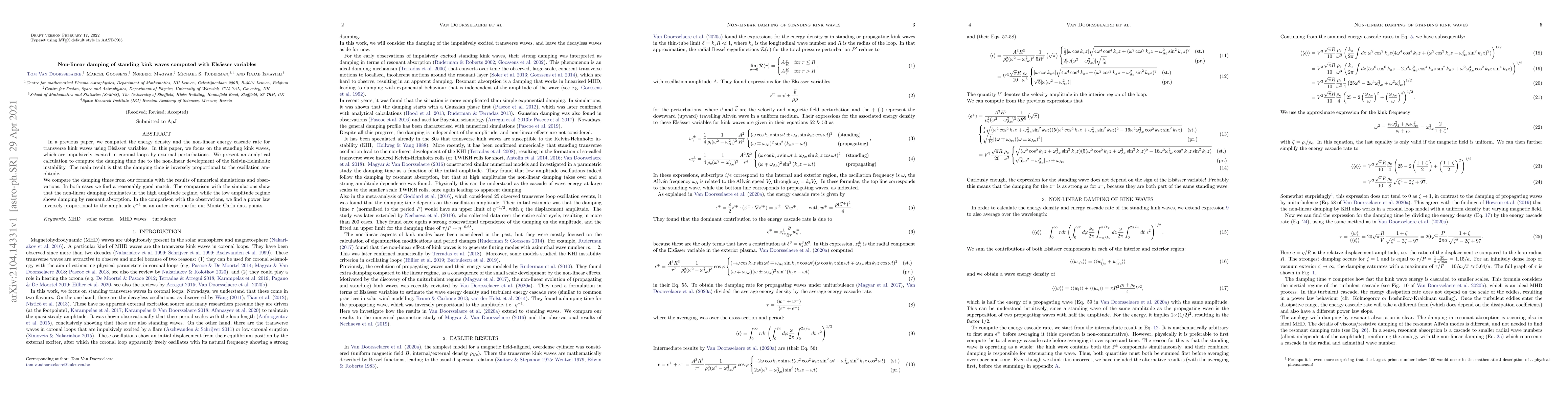 This paper investigates the non-linear damping of standing kink waves in coronal loops using Elsasser variables, finding that damping time inversely correlates with oscillation amplitude. The study compares analytical results with numerical simulations and observations, confirming that non-linear damping dominates at high amplitudes.