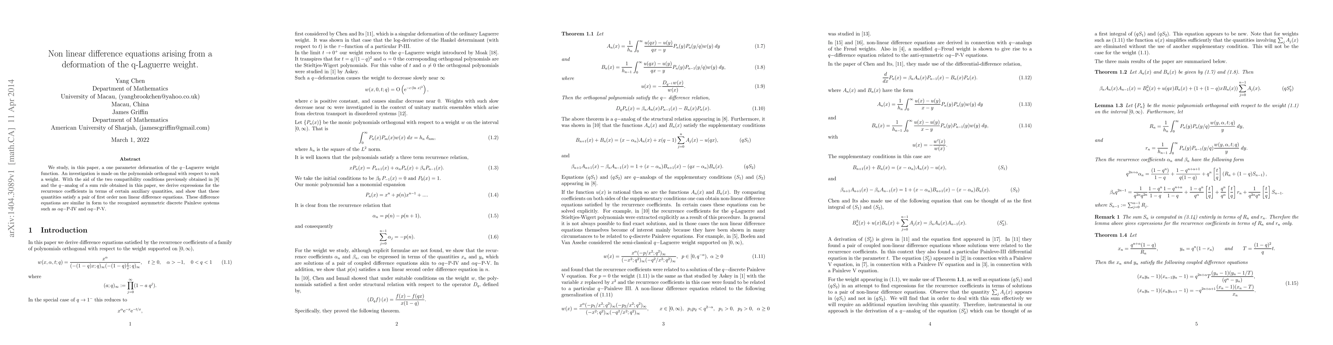 Researchers studied a deformation of the q-Laguerre weight function, leading to the derivation of non-linear difference equations similar to recognized discrete Painleve systems, which can help in understanding orthogonal polynomials.