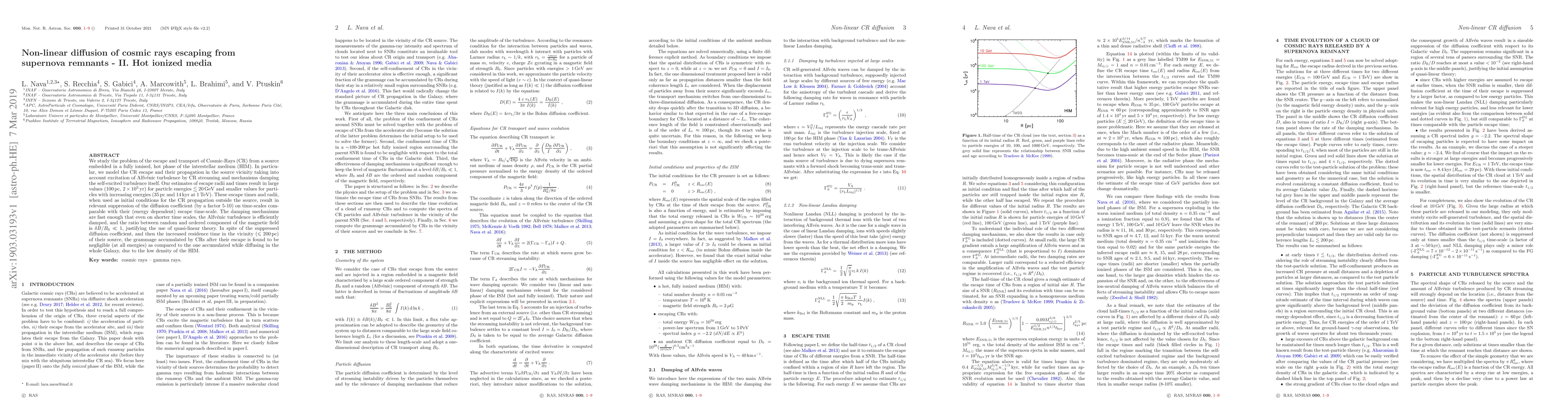 We study the problem of the escape and transport of Cosmic-Rays (CR) from a source embedded in a fully ionised, hot phase of the interstellar medium (HIM). In particular, we model the CR escape and their propagation in the source vicinity taking into account excitation of Alfv\'enic turbulence by CR streaming and mechanisms damping the self-excited turbulence itself. Our estimates of escape radii and times result in large values (100 pc, $2\times10^5$ yr) for particle energies $\lesssim20$ GeV and smaller values for particles with increasing energies (35 pc and 14 kyr at 1 TeV). These escape times and radii, when used as initial conditions for the CR propagation outside the source, result in relevant suppression of the diffusion coefficient (by a factor 5-10) on time-scales comparable with their (energy dependent) escape time-scale. The damping mechanisms are fast enough that even on shorter time scales the Alfv\'enic turbulence is efficiently damped, and the ratio between random and ordered component of the magnetic field is $\delta B/B_0\ll 1$, justifying the use of quasi-linear theory. In spite of the suppressed diffusion coefficient, and then the increased residence time in the vicinity (<200 pc) of their source, the grammage accumulated by CRs after their escape is found to be negligible (at all energies) as compared to the one accumulated while diffusing in the whole Galaxy, due to the low density of the HIM.