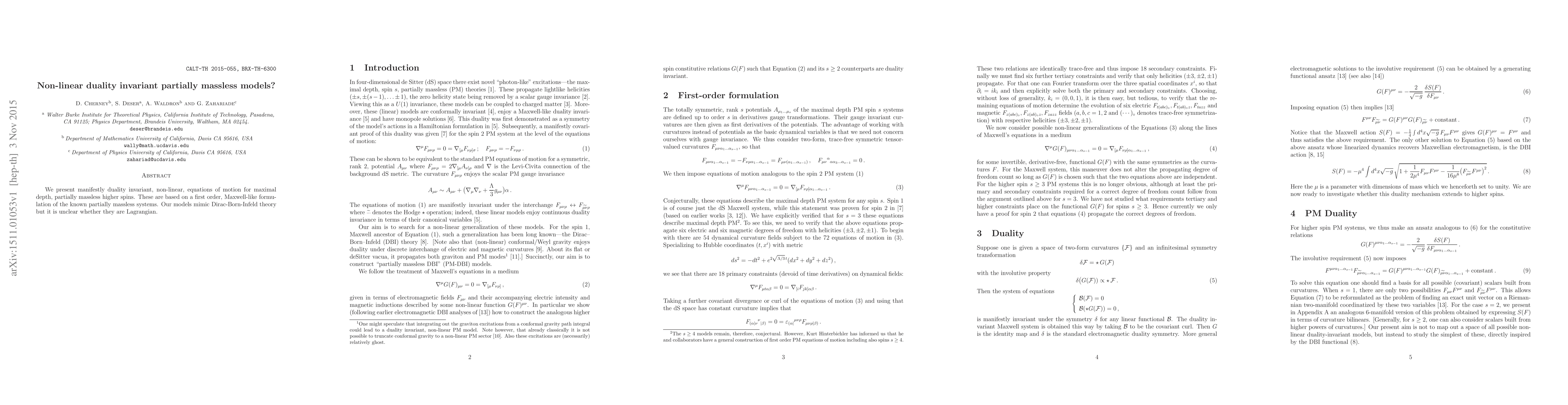 Summary: This paper introduces non-linear, duality invariant equations of motion for partially massless higher spins, modeled after Maxwell-like formulations, though the Lagrangian nature of these models remains uncertain.